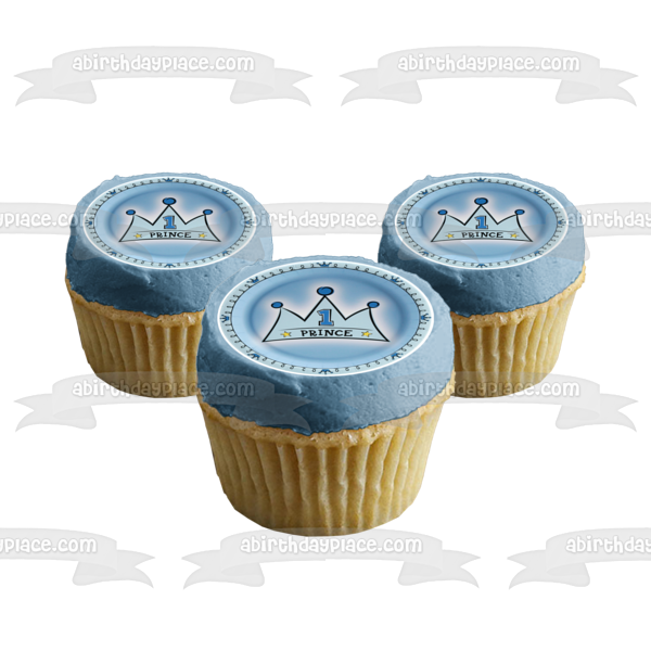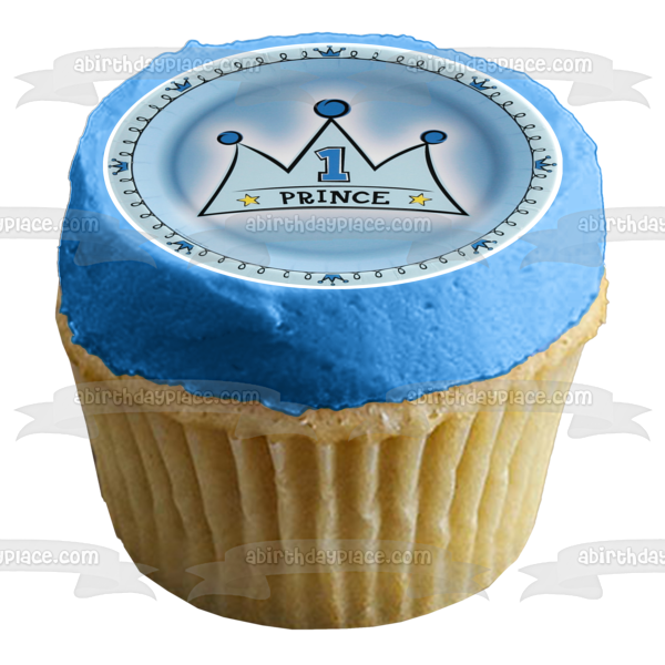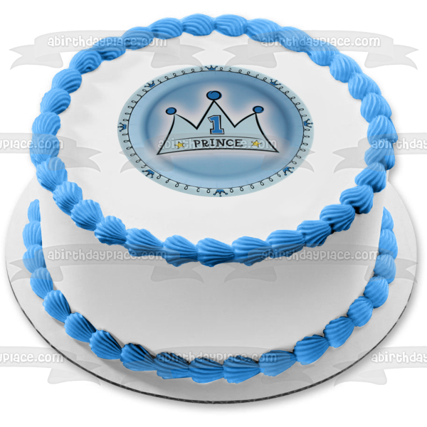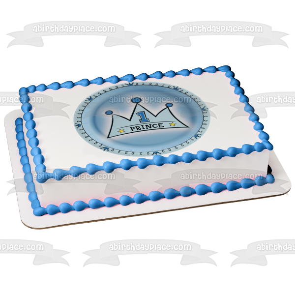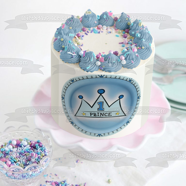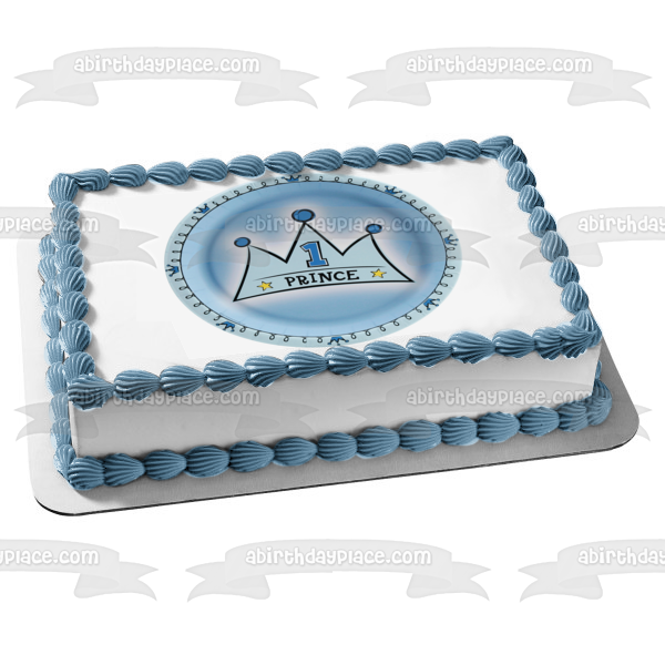 Celebrate your special occasion with this Happy 1st Birthday themed Edible Cake Topper Image featuring a Blue Prince Crown!