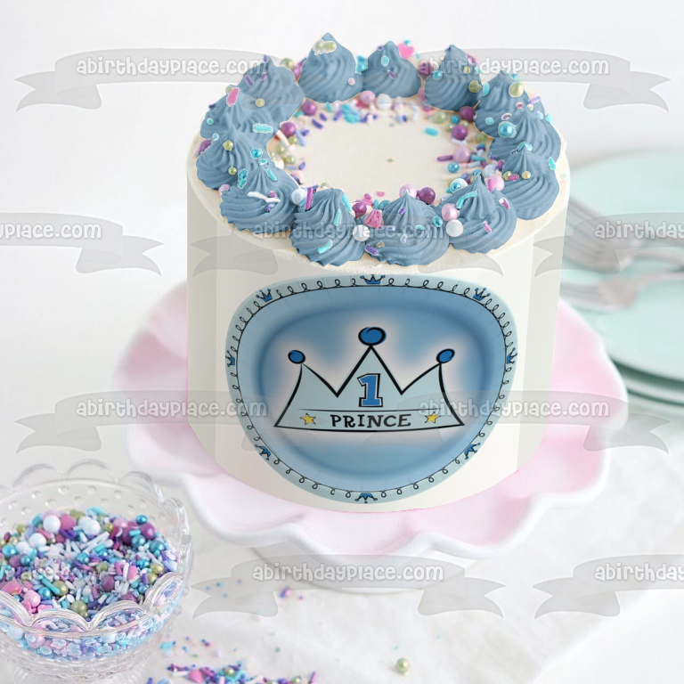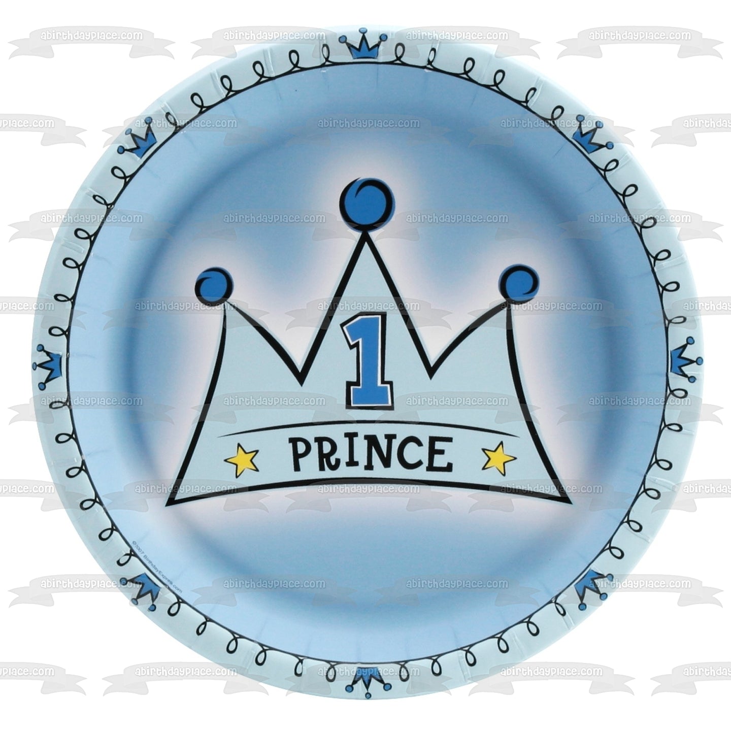 Happy 1st Birthday Prince Blue Crown Edible Cake Topper Image ABPID00858