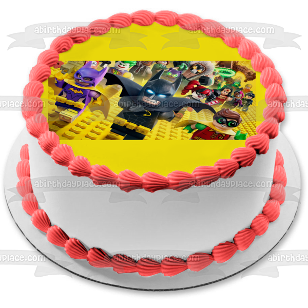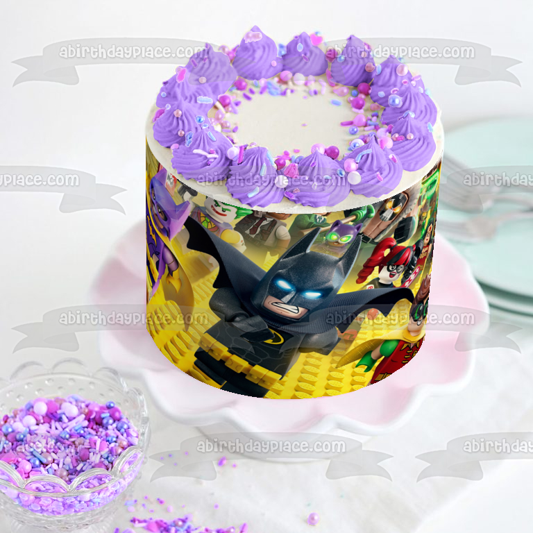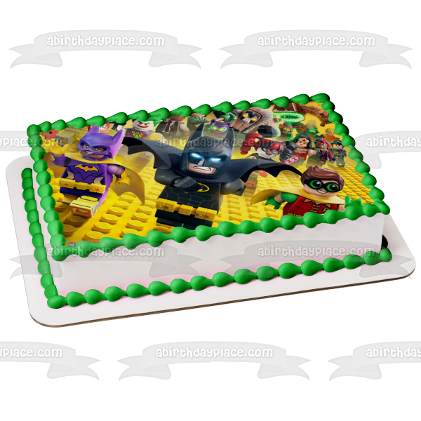 Celebrate your day with this The LEGO Batman Movie themed Edible Cake Topper Image featuring Robin, Batwoman, The Joker and Harley Quinn!