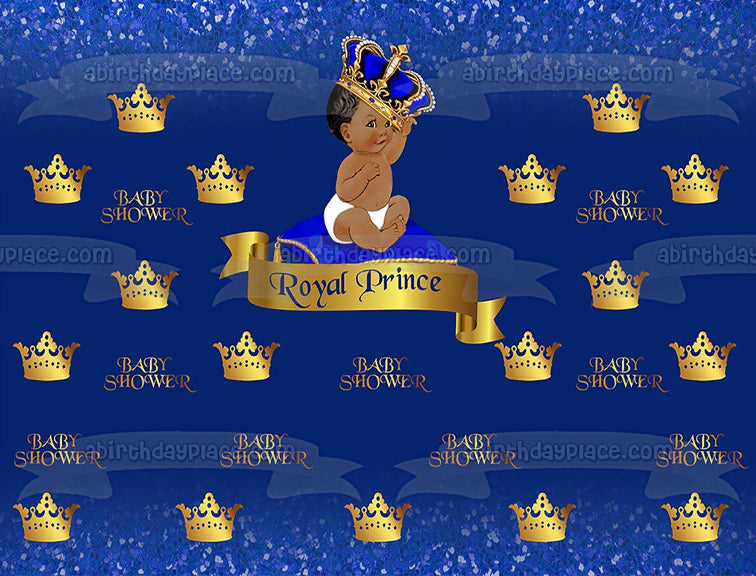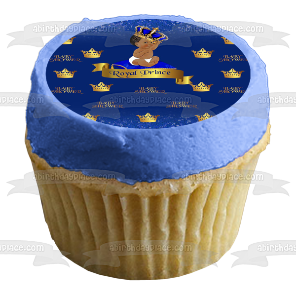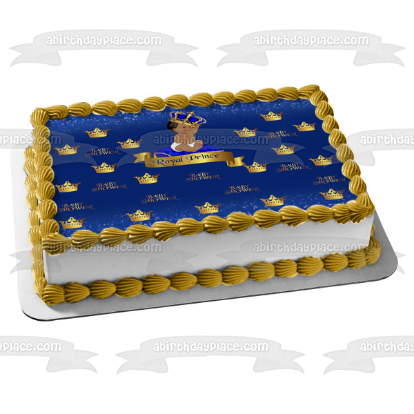 Celebrate your Baby Shower with this Edible Cake Topper Image featuring a Royal Baby Boy Prince wearing a Gold Crown!