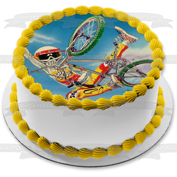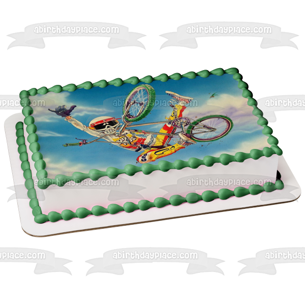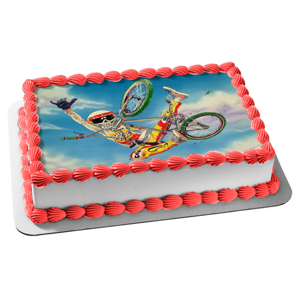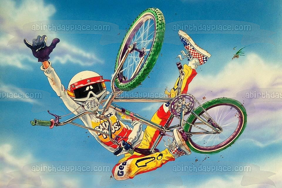 Celebrate your BMX fan with this Edible Cake Topper Image featuring a Bike Rider Doing a Trick!