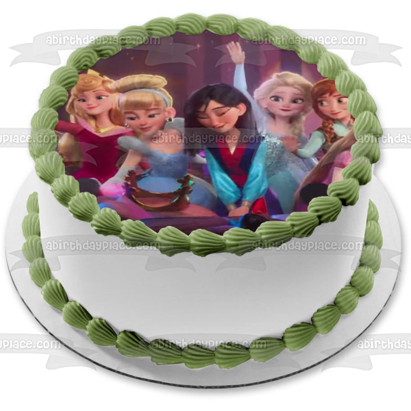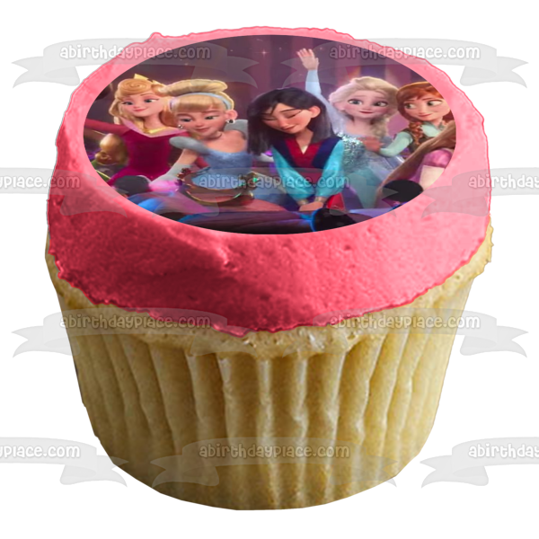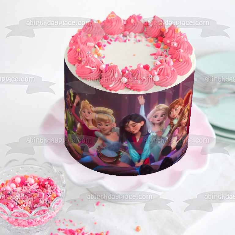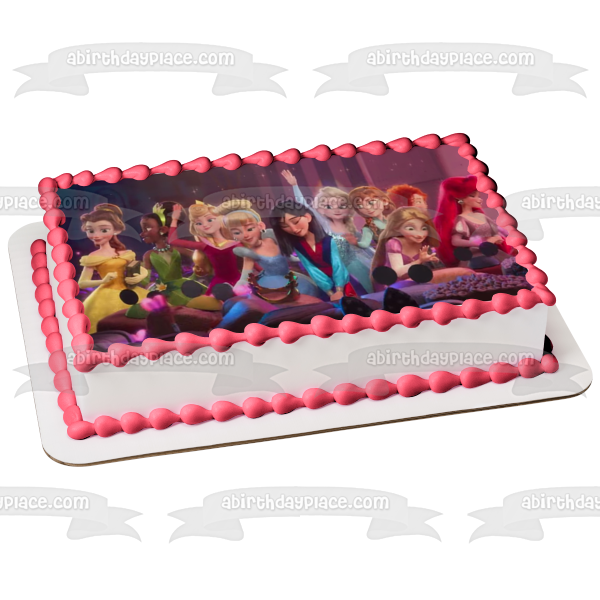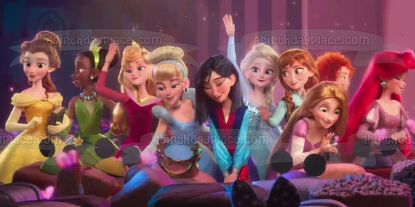 Celebrate your Princesses fan with this Wreck-It Ralph Princess themed Edible Cake Topper Image featuring Belle, Tiana, Mulan, Elsa, Anna, Merida and Aurora!