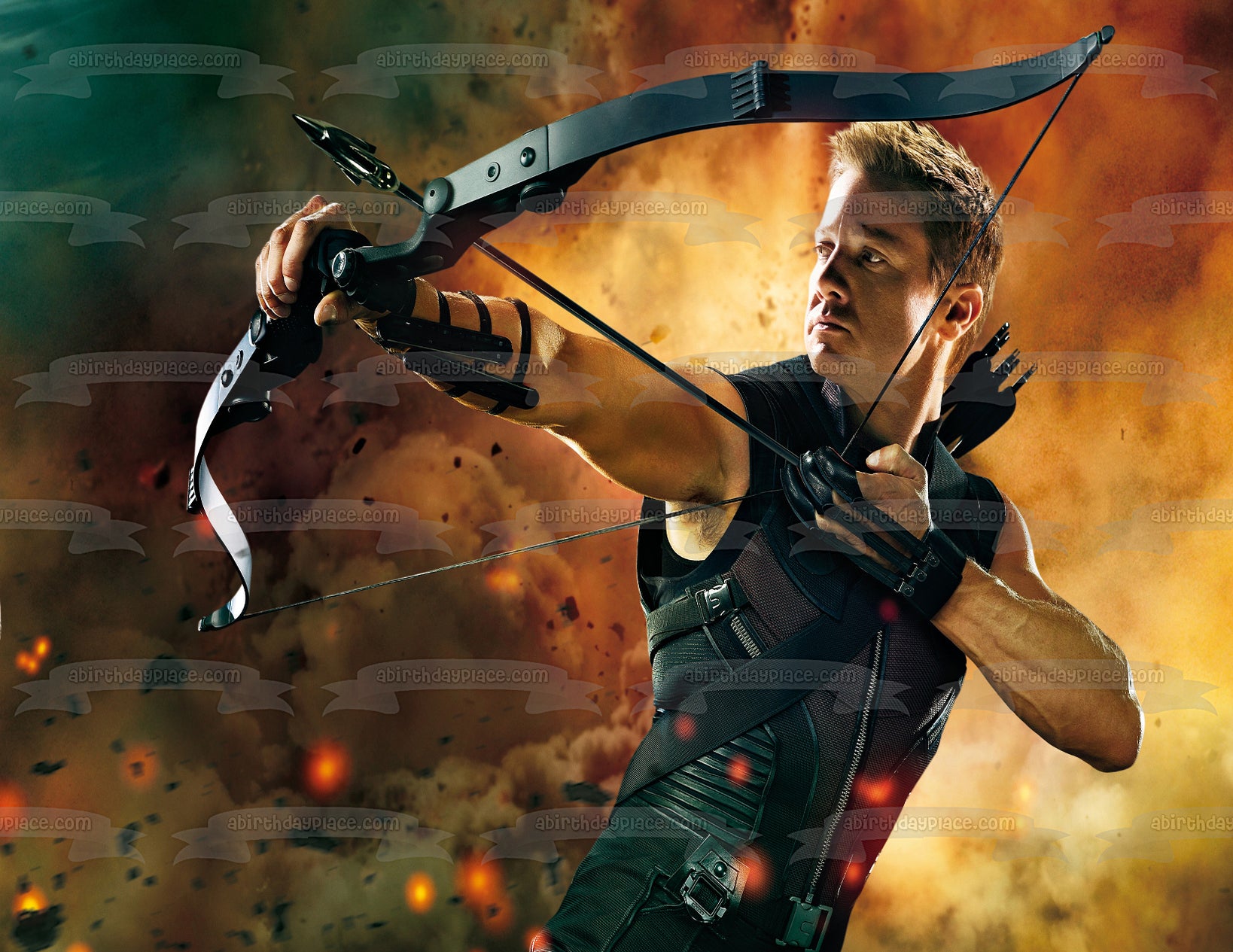 Celebrate your Hawkeye fan with this Edible Cake Topper Image featuring Clint Barton AKA Hawkeye shooting an Arrow!