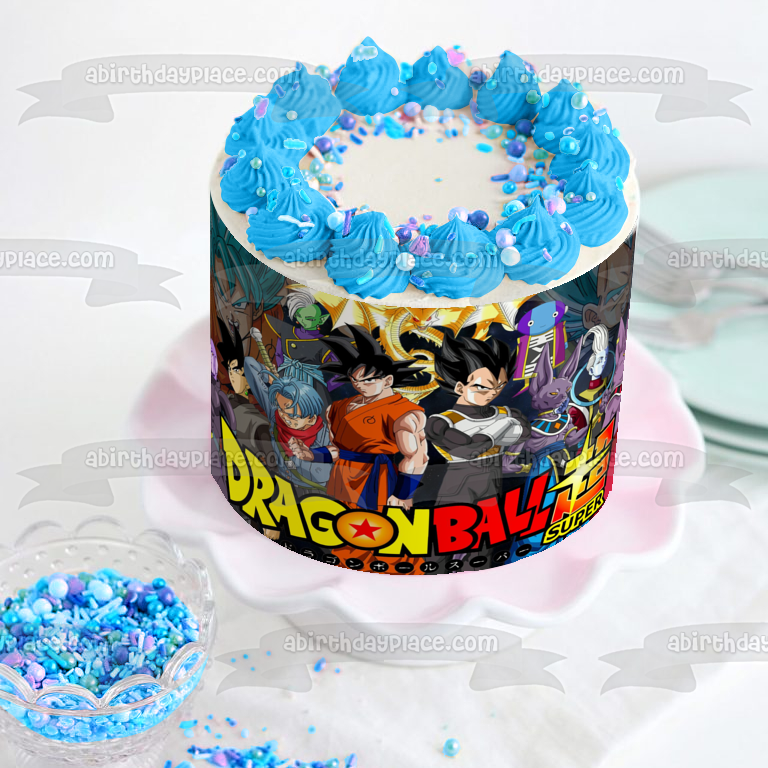 Celebrate your Dragon Ball Super fan with this Edible Cake Topper Image featuring Goku and Vegeta!