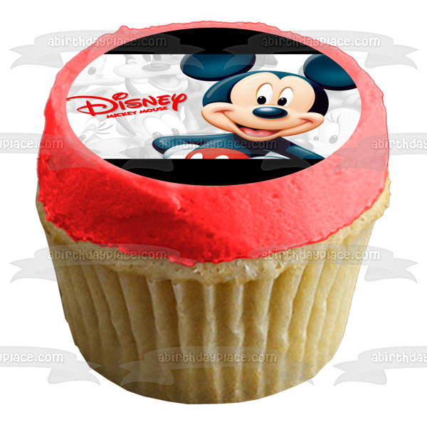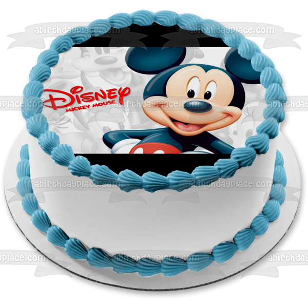 Celebrate your special day with this Edible Cake Topper Image featuring Mickey Mouse in Color on a Black and White Background!