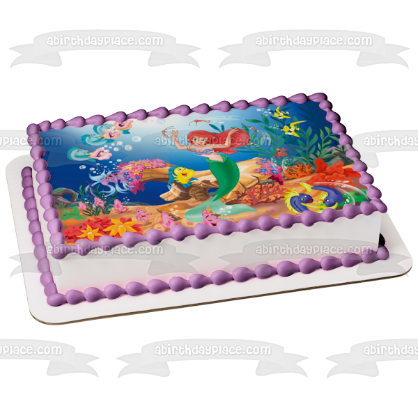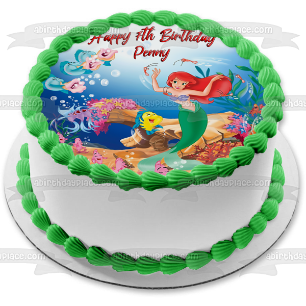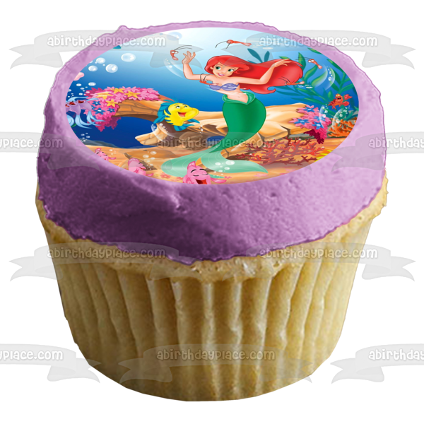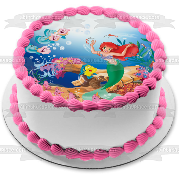 Celebrate your special occasion with this The Little Mermaid themed Edible Cake Topper Image featuring Ariel and Flounder!