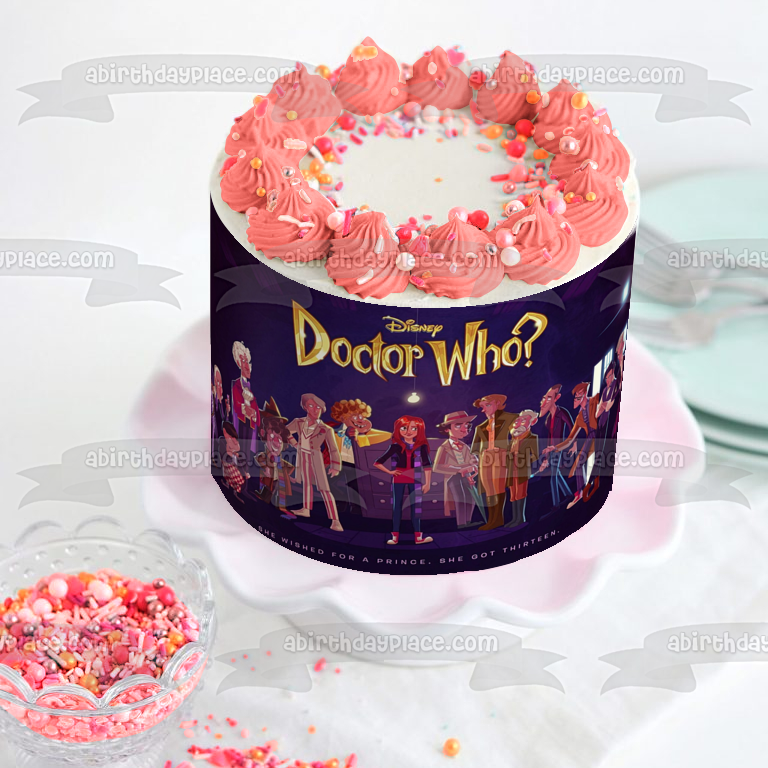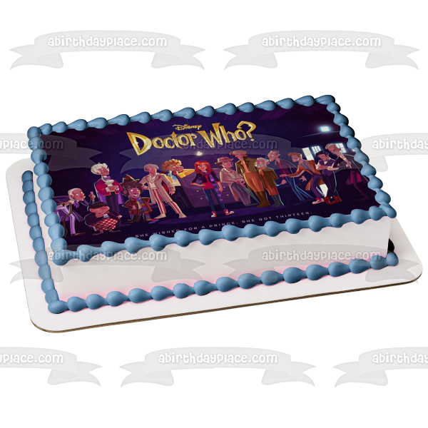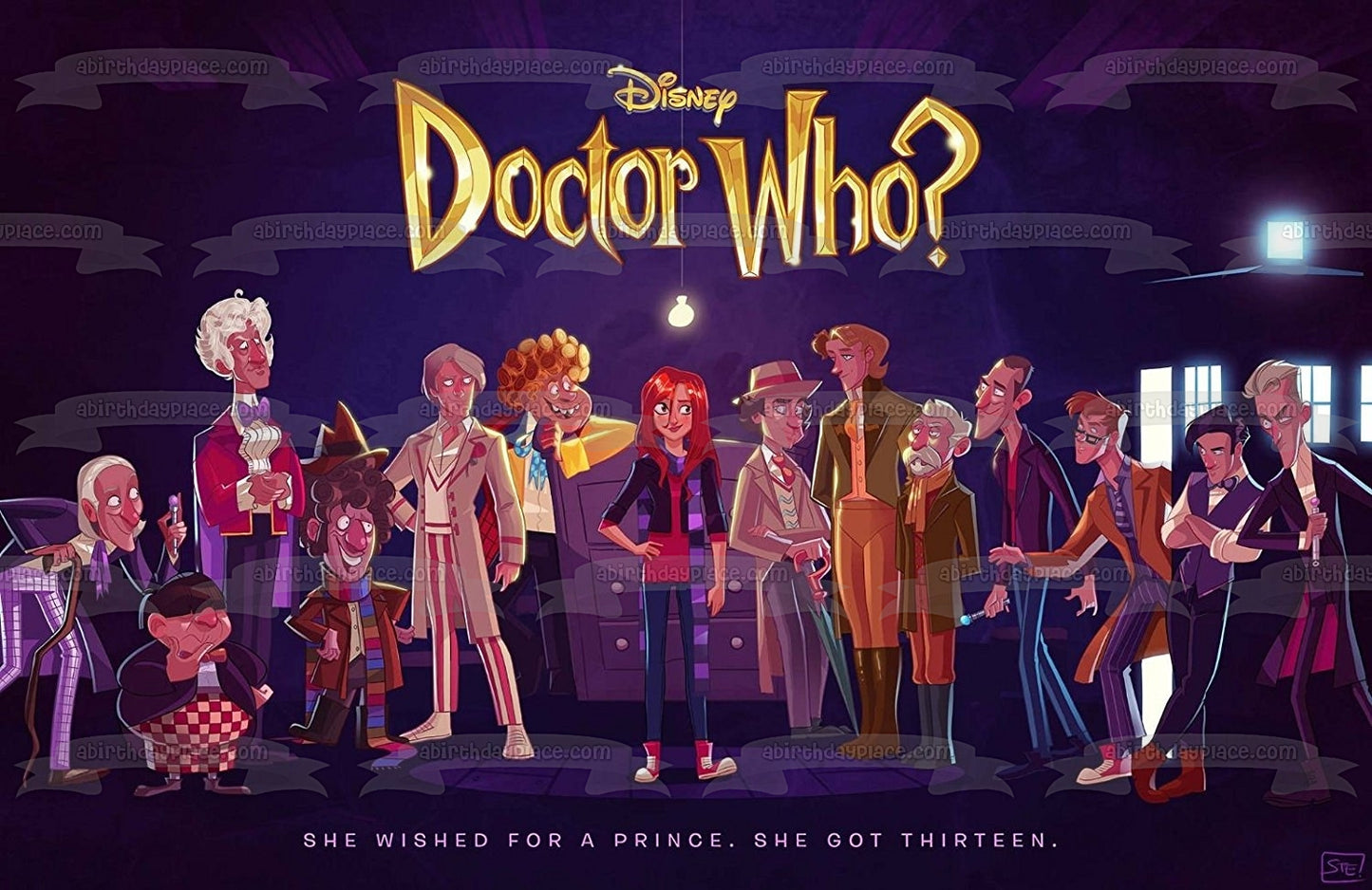 Celebrate your Doctor Who fan with this Edible Cake Topper Image featuring Various Characters and the words She Wished For A Prince And Got Thirteen!