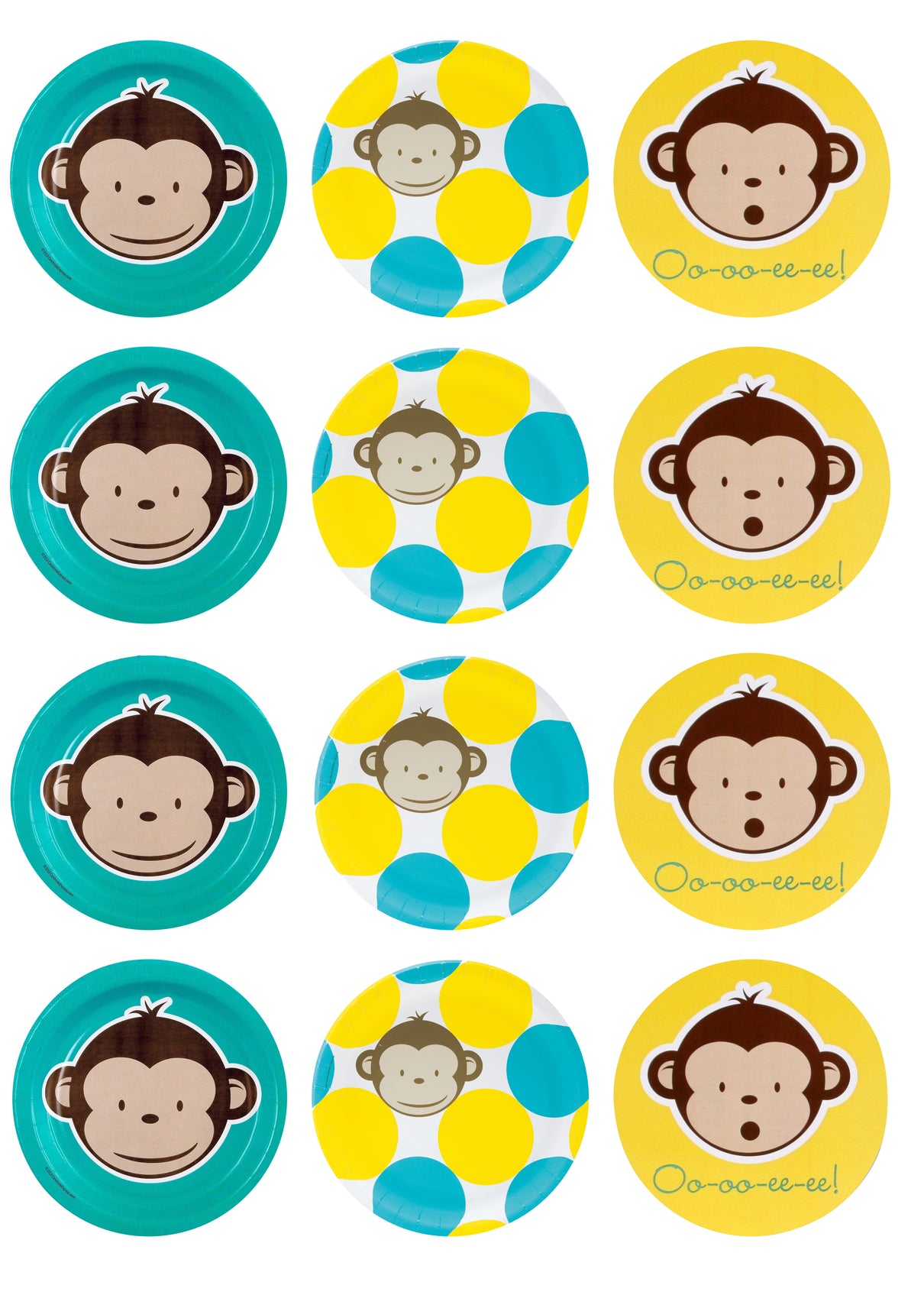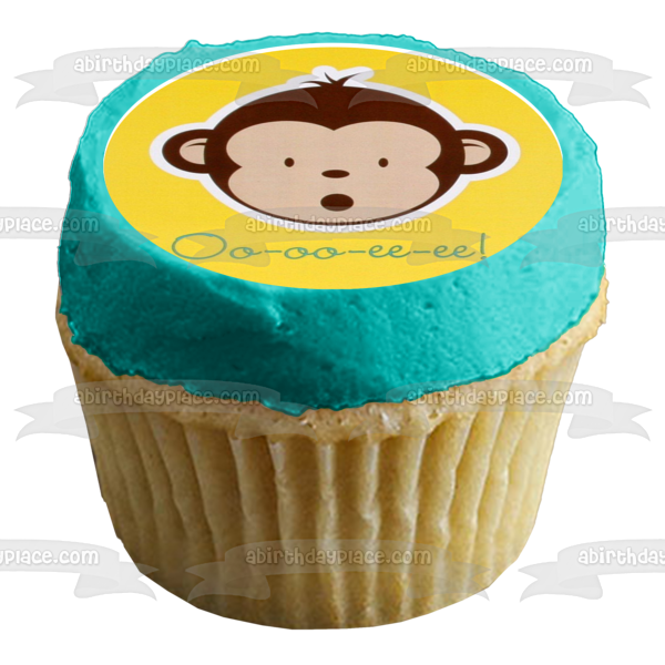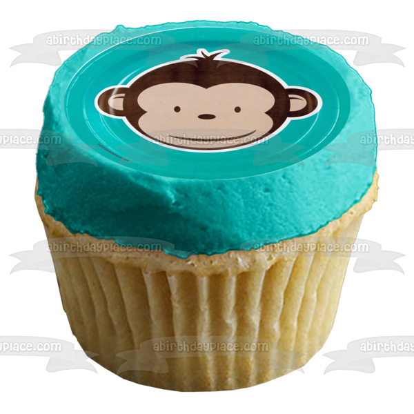 Decorate your Cupcakes with these 12 Count Baby Monkey themed Edible Cupcake Topper Images featuring Blue, Yellow and Polka Dot Backgrounds!