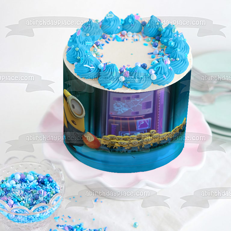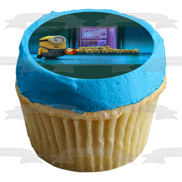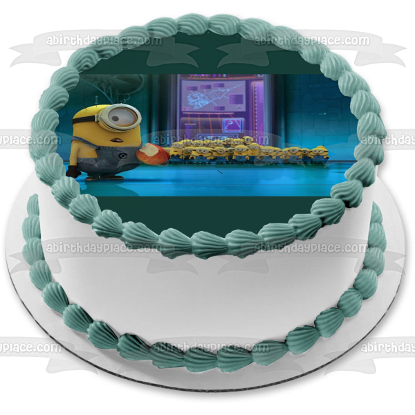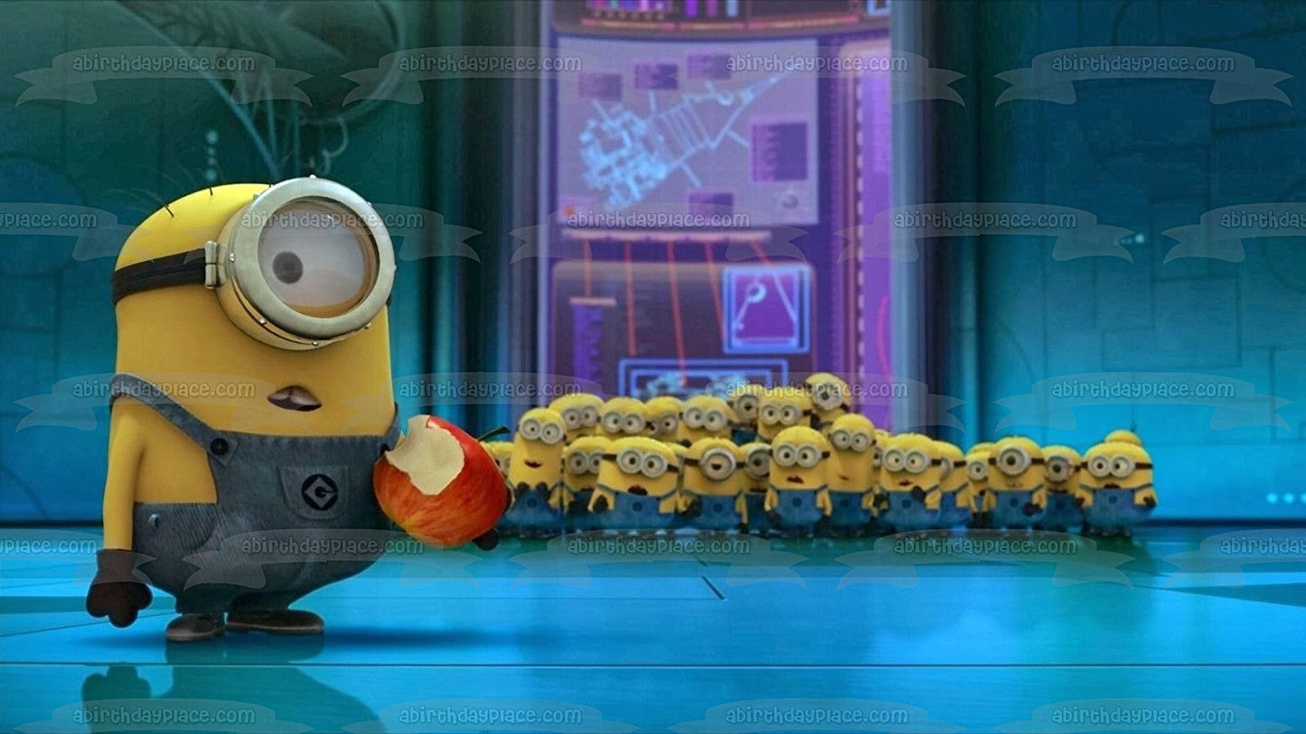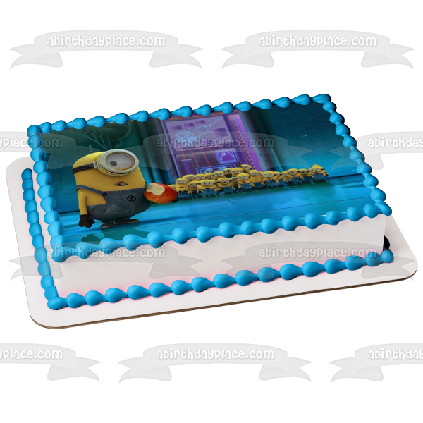 Decorate your cake with this Despicable Me Bapple themed Edible Cake Topper Image featuring Stuart and a group of Minions!