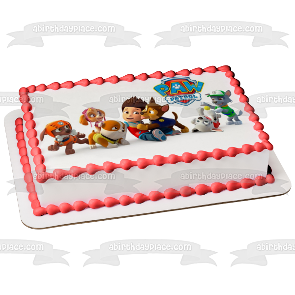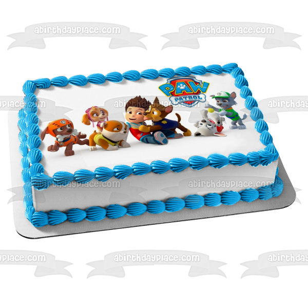 Celebrate your Paw Patrol fan with this Edible Cake Topper Image featuring Chase, Everese, Tracker, Skye, Zuma, Marshall, Rocky and Ryder!