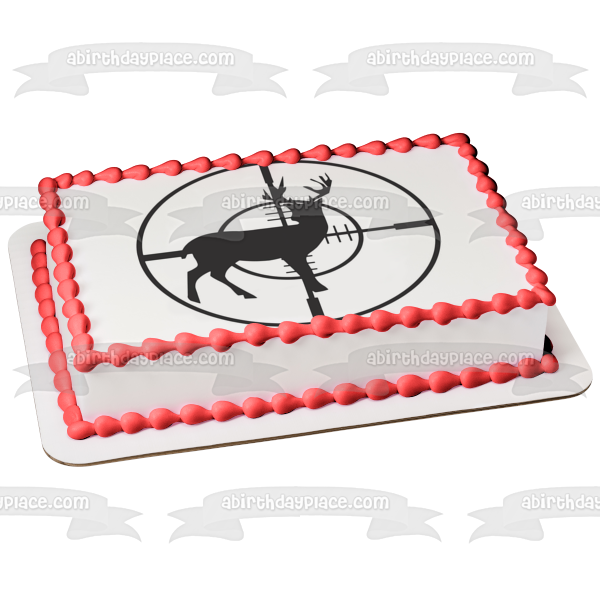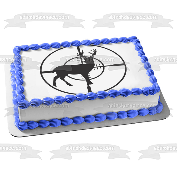 Celebrate your Hunter with this Black and White Deer Hunting themed Edible Cake Topper Image featuring a Black and White Target!