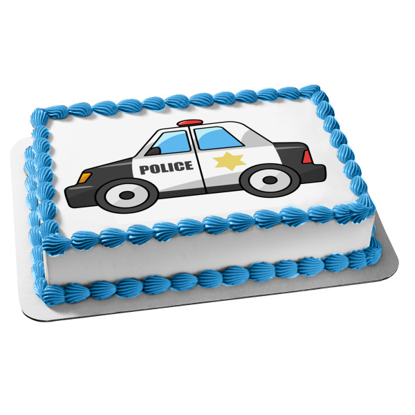 Decorate your cake with this Cartooned themed Edible Cake Topper Image featuring a Police Car!