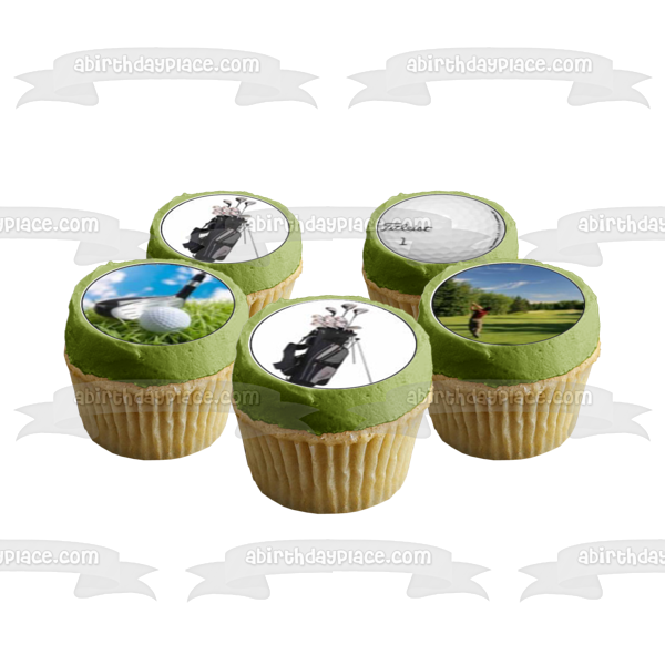 Decorate your Cupcakes with these Golf themed Edible Cupcake Topper Images featuring Golf Balls, Golf Bags and Golf Clubs!