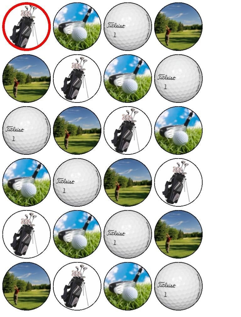 Decorate your Cupcakes with these Golf themed Edible Cupcake Topper Images featuring Golf Balls, Golf Bags and Golf Clubs!