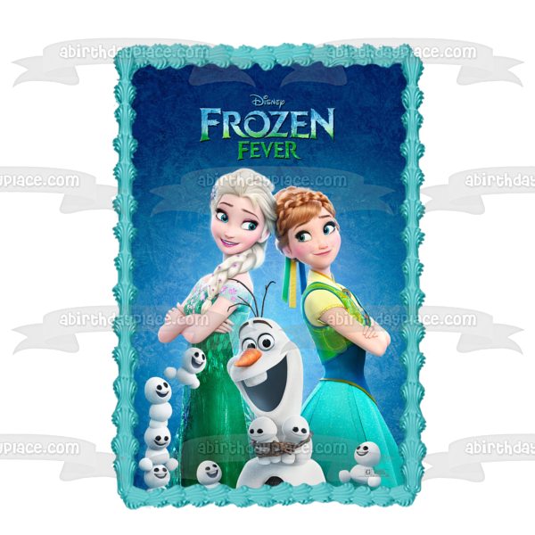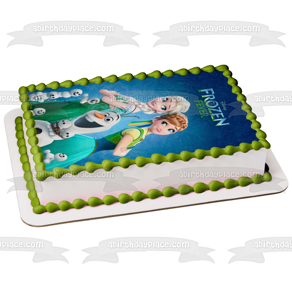 Celebrate your special occasion with this Frozen themed Edible Cake Topper Image featuring Elsa, Anna and Olaf!