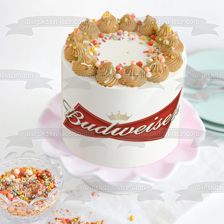 Celebrate your day with this Adult Beverage themed Edible Cake Topper Image featuring the Busweiser Logo!
