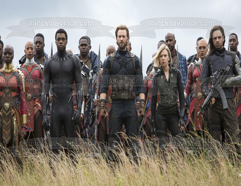 Celebrate your Superhero fan with this Avengers Infinity War themed Edible Cake Topper Image featuring Iron Man, Thor, The Hulk, Black Widow and Bucky Barnes!