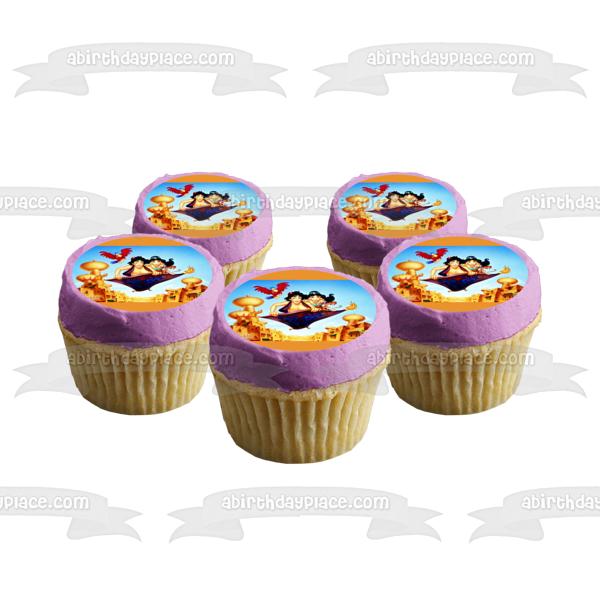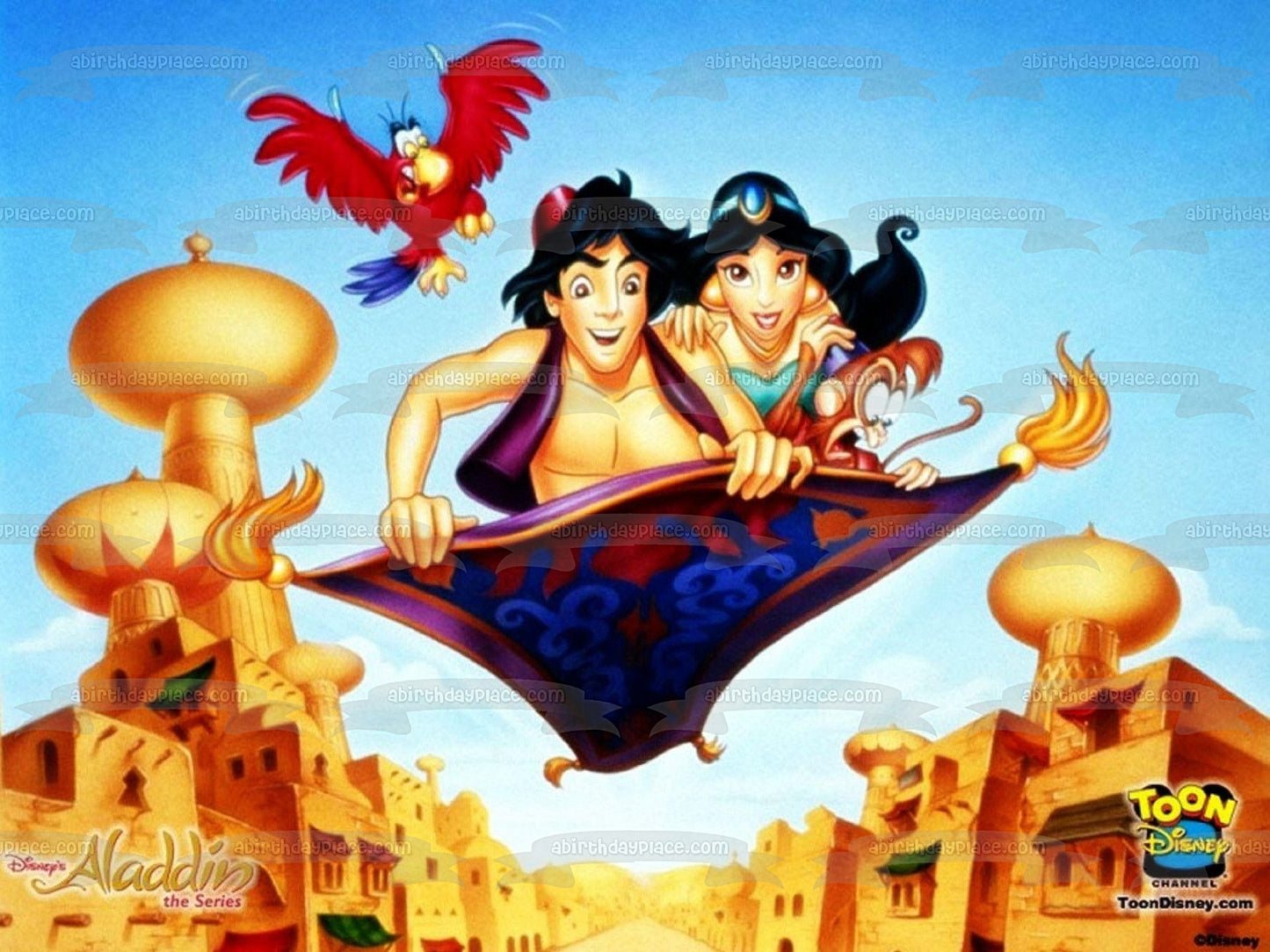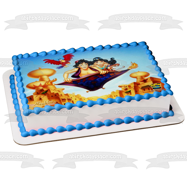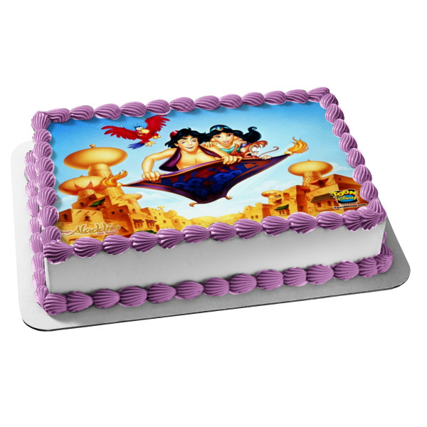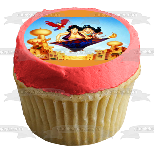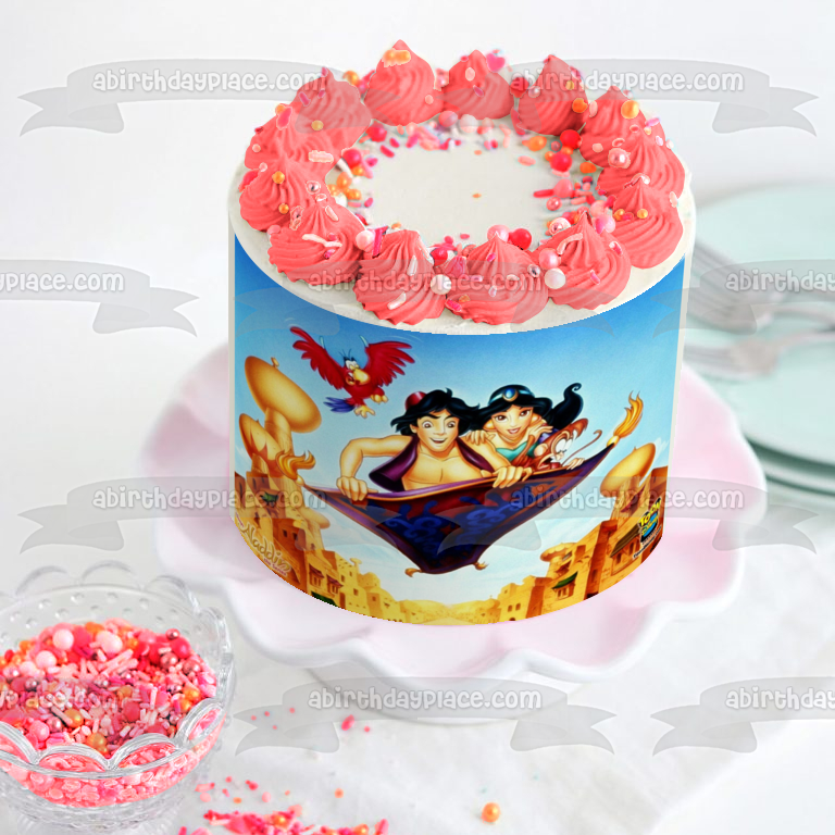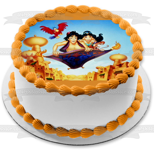 Celebrate your day with this Aladdin themed Edible Cake Topper Image featuring Aladdin, Princess Jasmine, Abu and Iago!