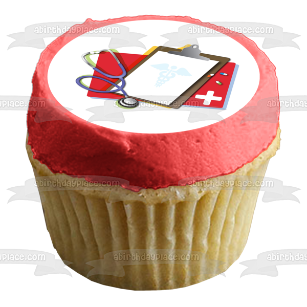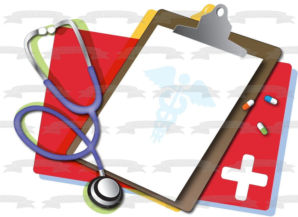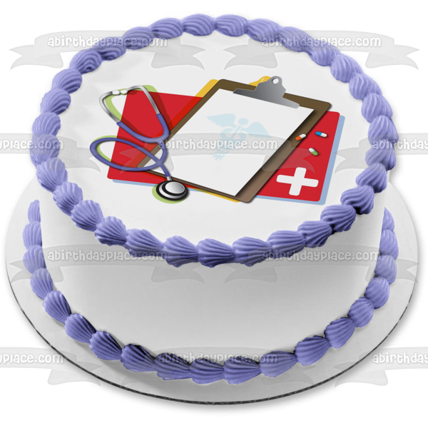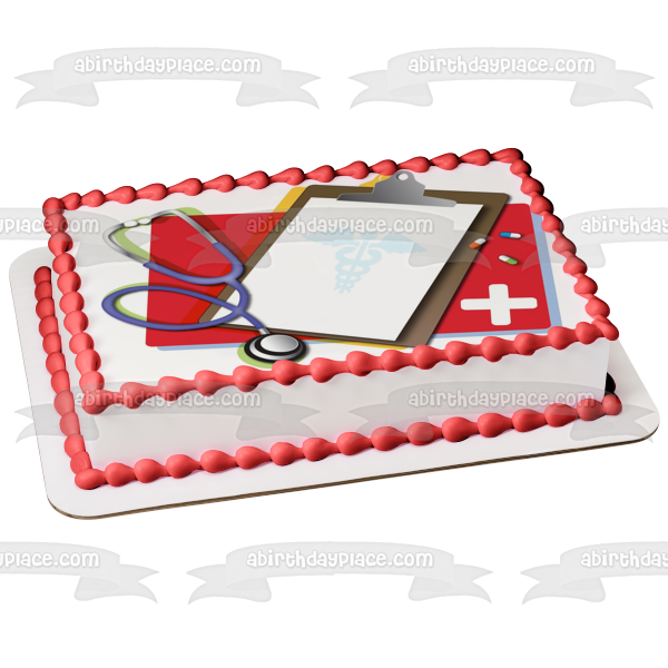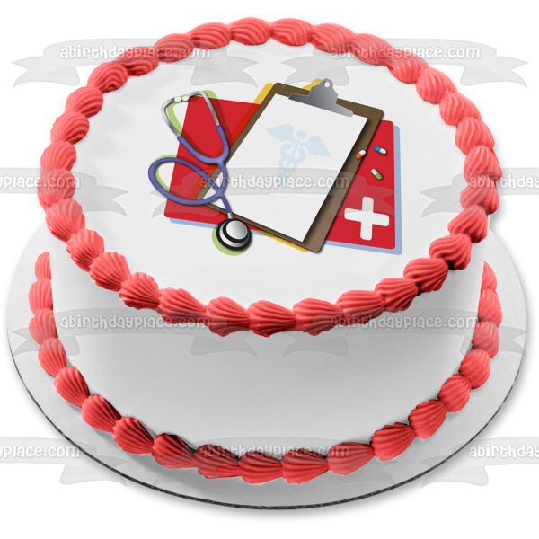 Celebrate your day with this Medicine themed Edible Cake Topper Image featuring a Doctor's Clipboard and a Stethoscope!