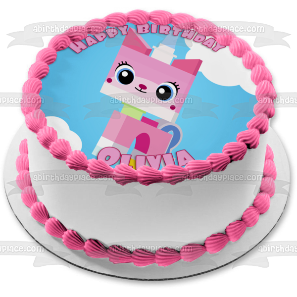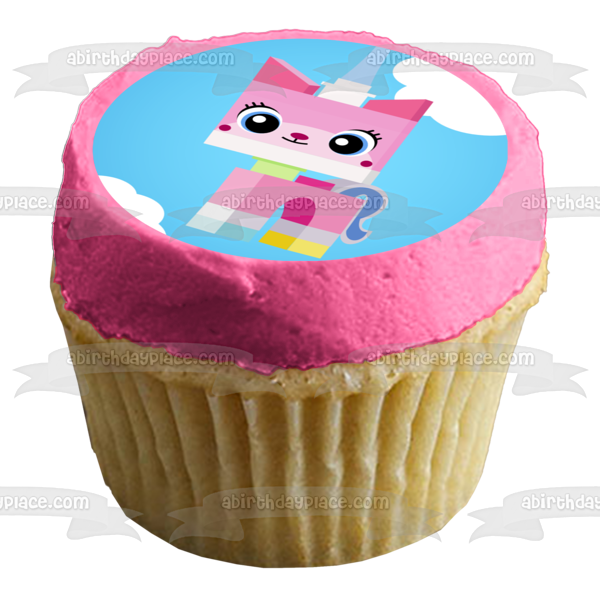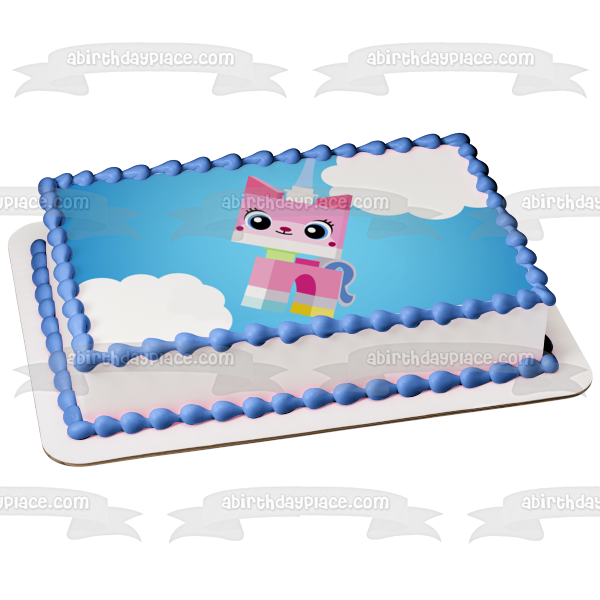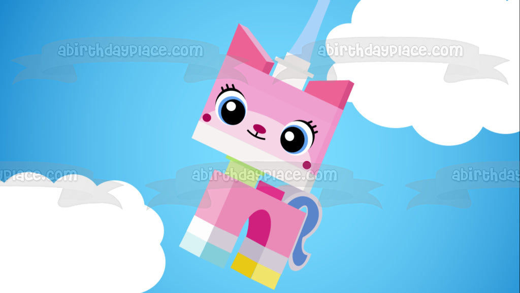 Celebrate your special occasion with this LEGO Princess themed Edible Cake Topper Image featuring Unikitty in the Clouds!