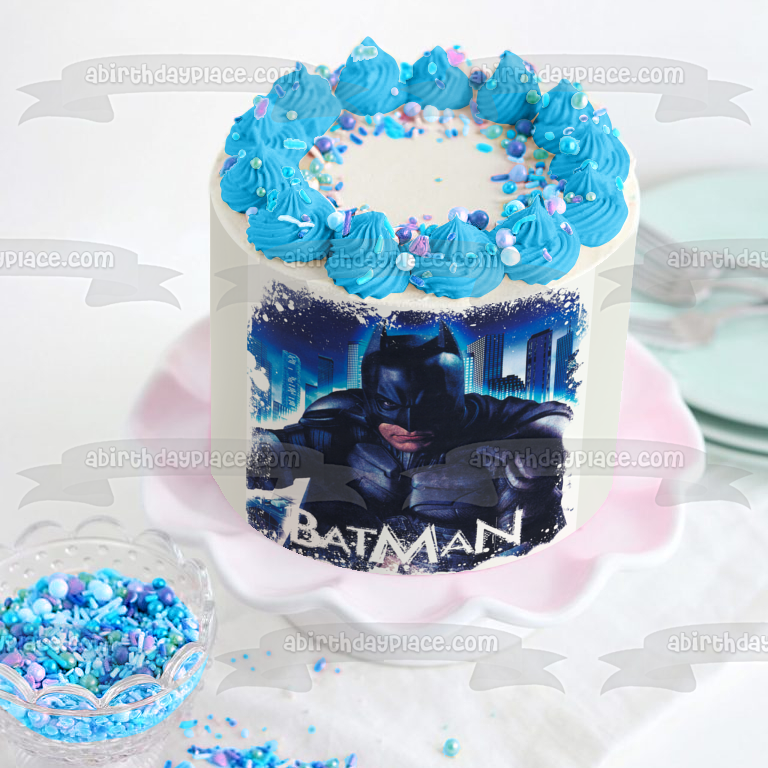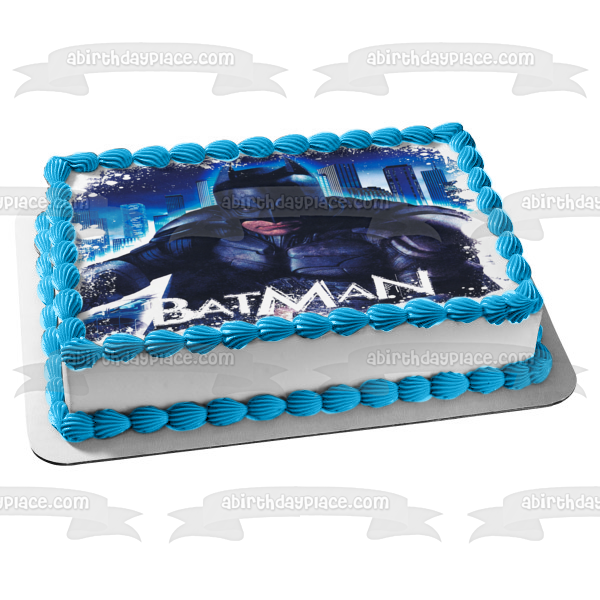 Celebrate your Superhero fan with this Edible Cake Topper Images featuring Batman and the City Skyline!
