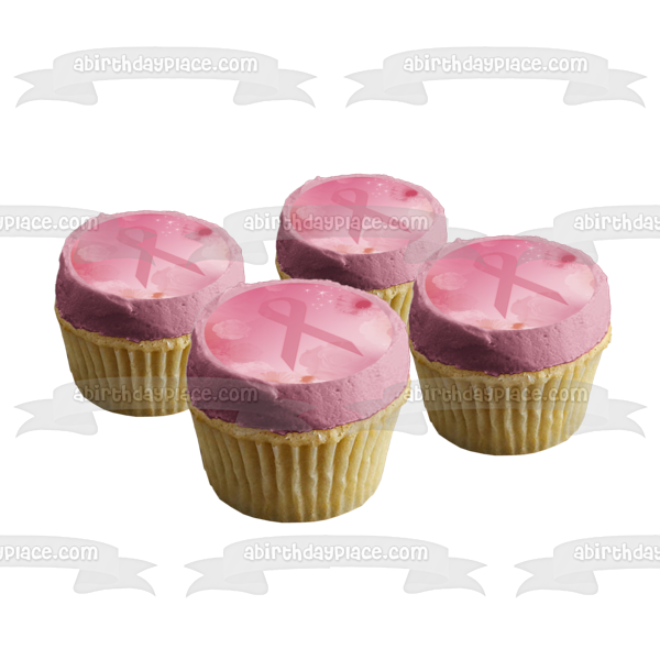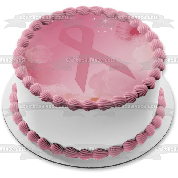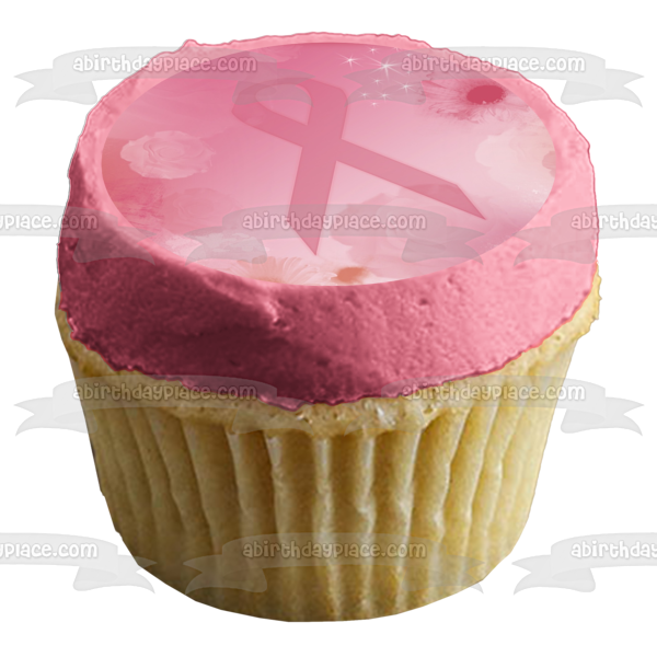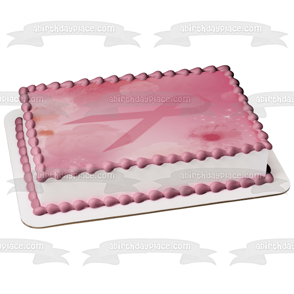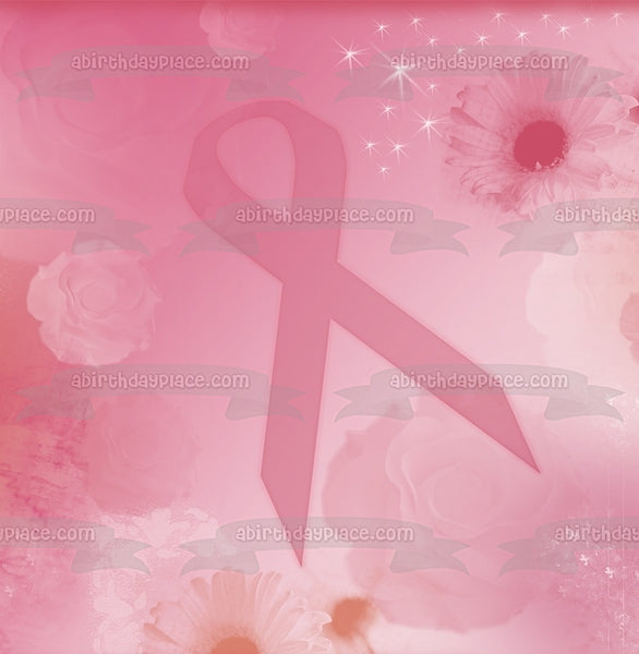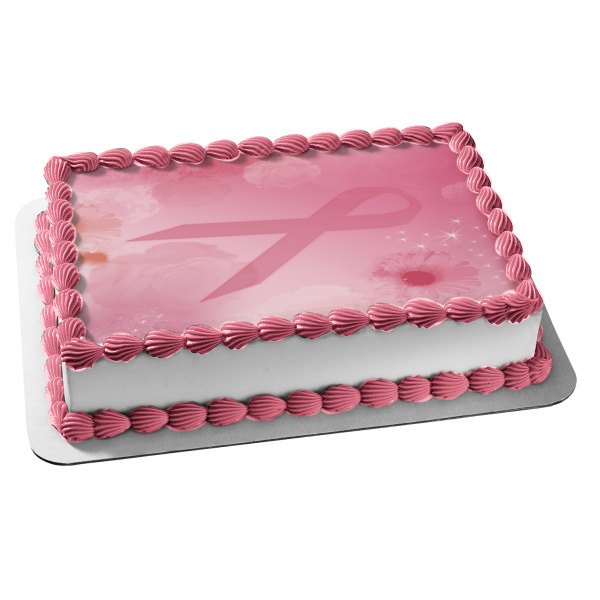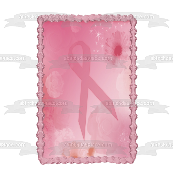 Decorate your cake with this Breast Cancer Awareness themed Edible Cake Topper Image featuring the Pink Ribbon and Flowers!