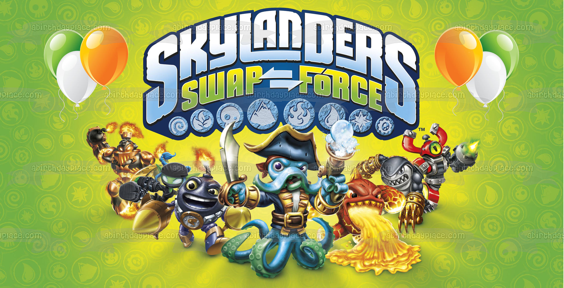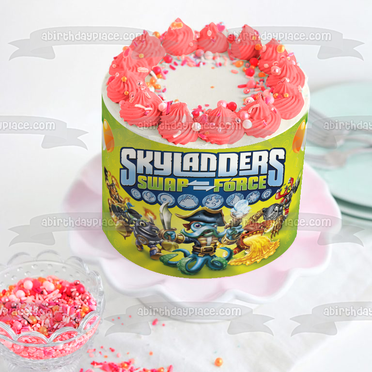 Skylanders Swap Force Wash Buckler Magna Charge and Balloons Edible Cake Topper Image ABPID03378
