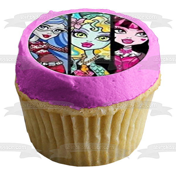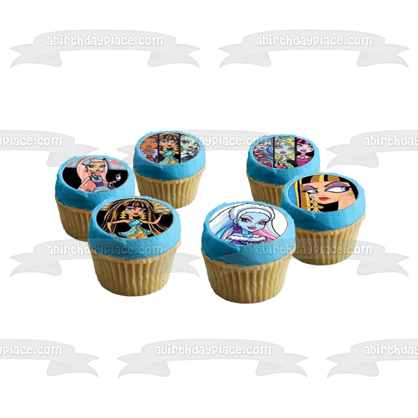 Celebrate your day with these 24 Count Monster High themed Edible Cake Topper Images featuring Clawdeen Wolf, Lagoona Blue, Cleo de Nile, Draculaura, Frankie Stein and Ghoulia Yelps!