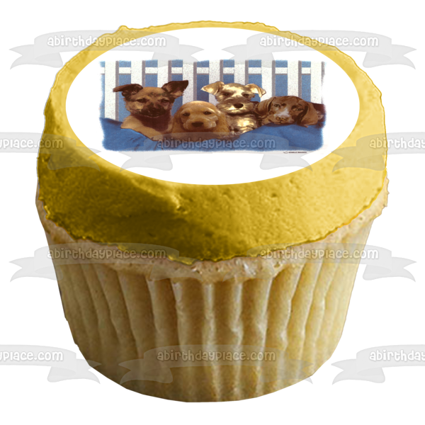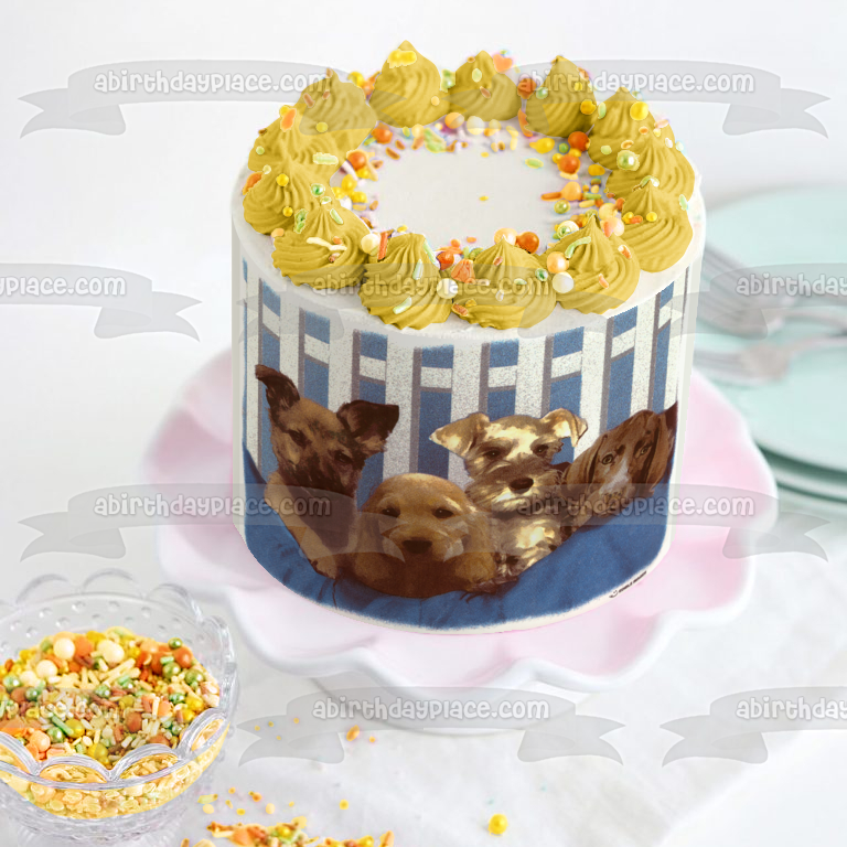 Decorate your Cake with this Puppies themed Edible Cake Topper Image featuring a Black Lab, Cocker Spaniel and a Schnauzer!