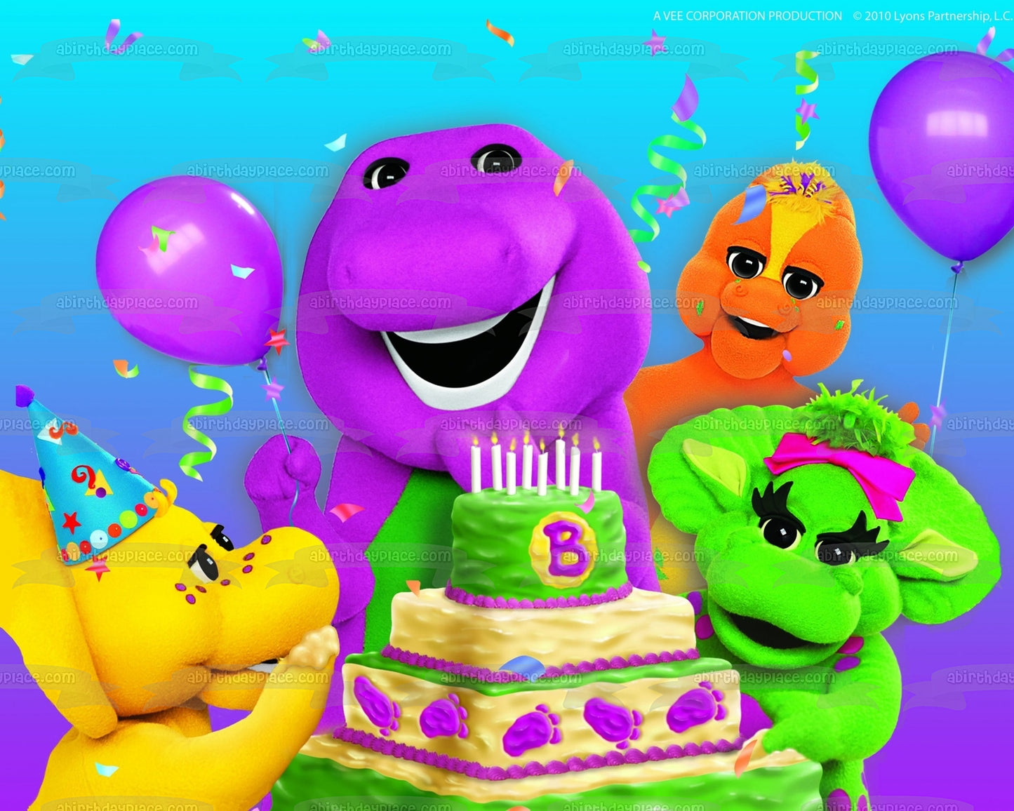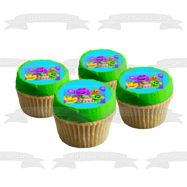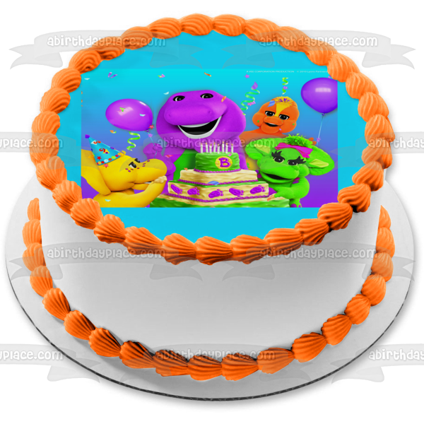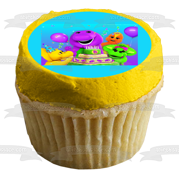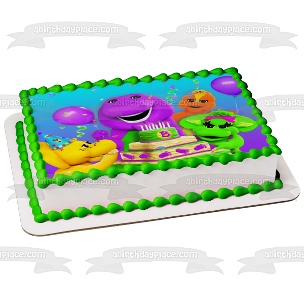 Celebrate your special day with this Barney Birthday themed Edible Cake Topper Image featuring Baby Bop, BJ and Riff!