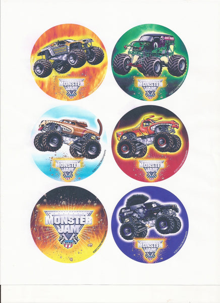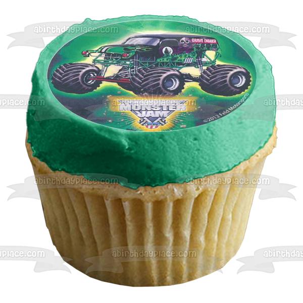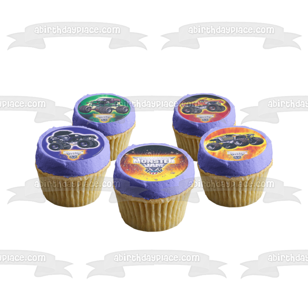 Celebrate your Monster Truck fan with these Monster Jam themed Edible Cupcake Topper Image featuring Grave Digger, Maximum Destruction and 1/2 Pint!