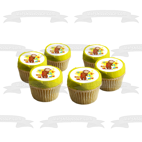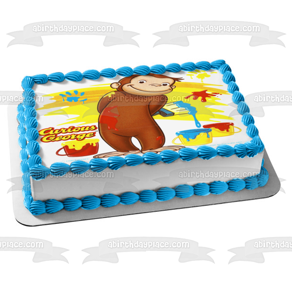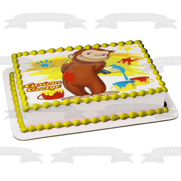 Decorate your cake with this Curious George themed Edible Cake Topper Image featuring George Painting a Wall!