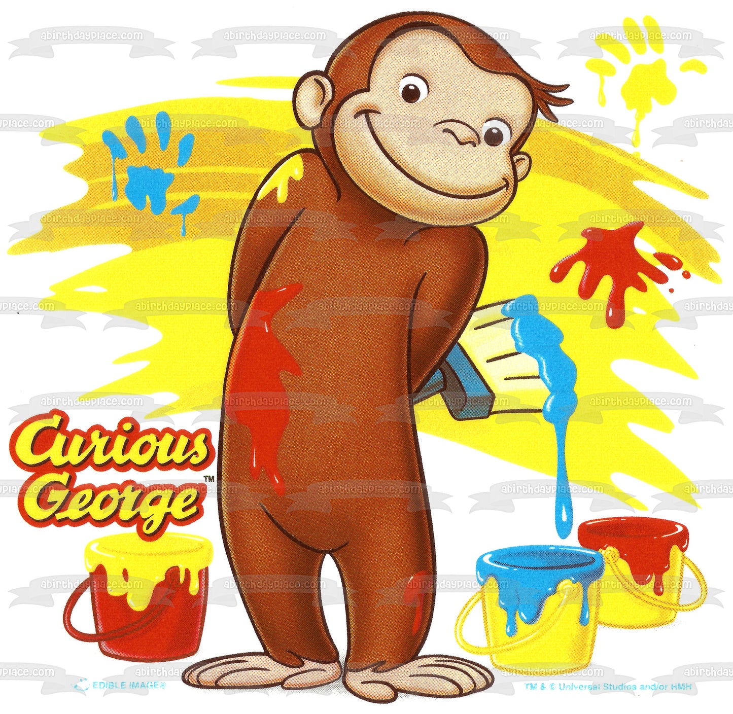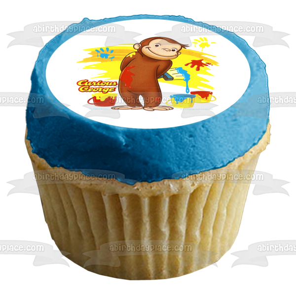 Curious George with Paint Buckets Edible Cake Topper Image ABPID03822