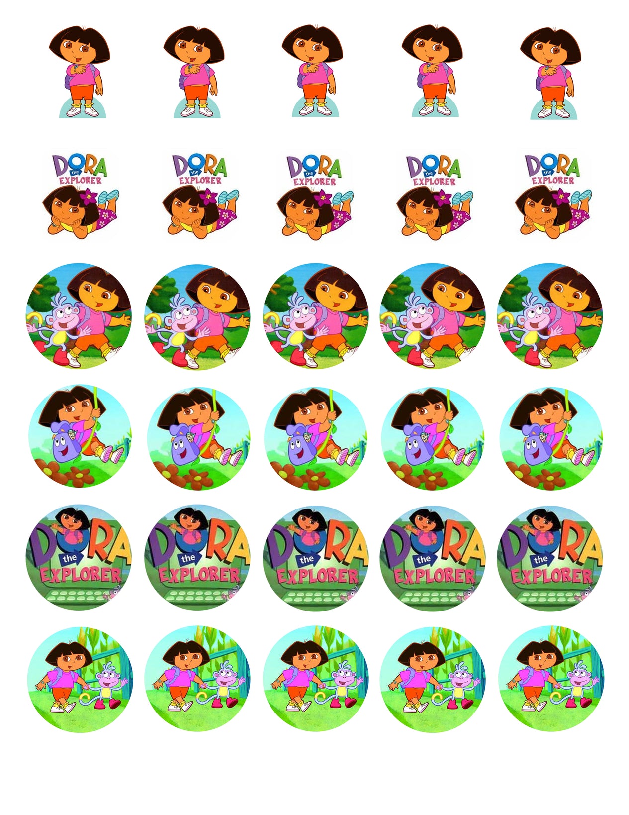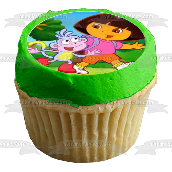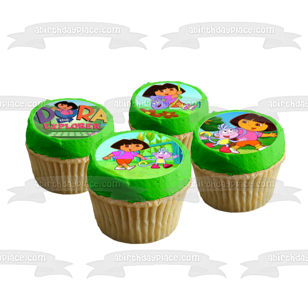 Celebrate your special occasion with these 24 Count Dora the Explorer themed Edible Cupcake Topper Images featuring Boots and Backpack!