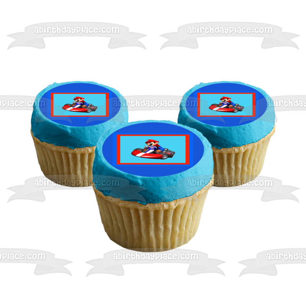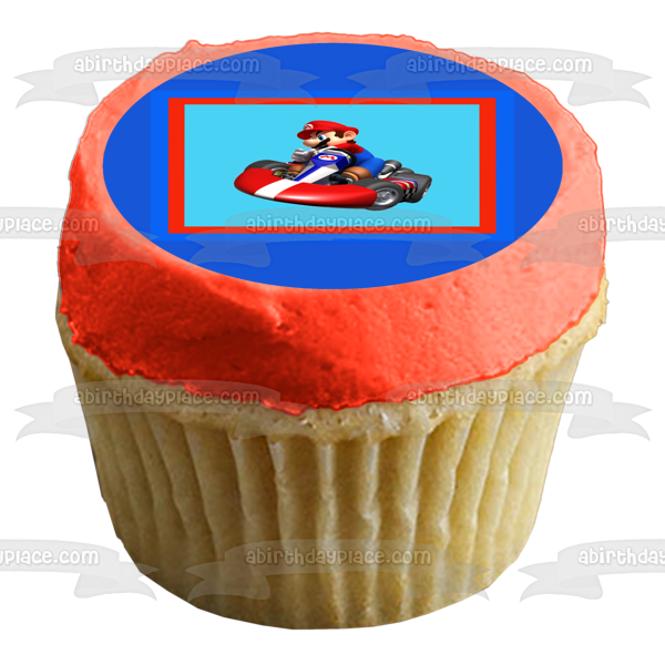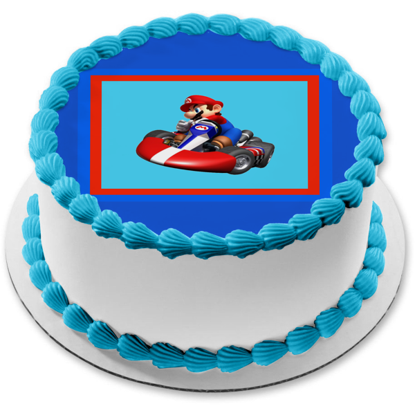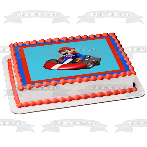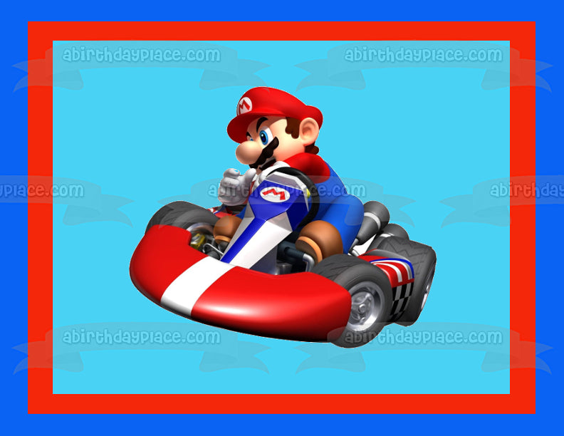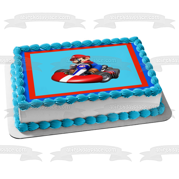 Mario Kart Mario Red Blue Border Edible Cake Topper Image ABPID04092
