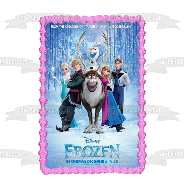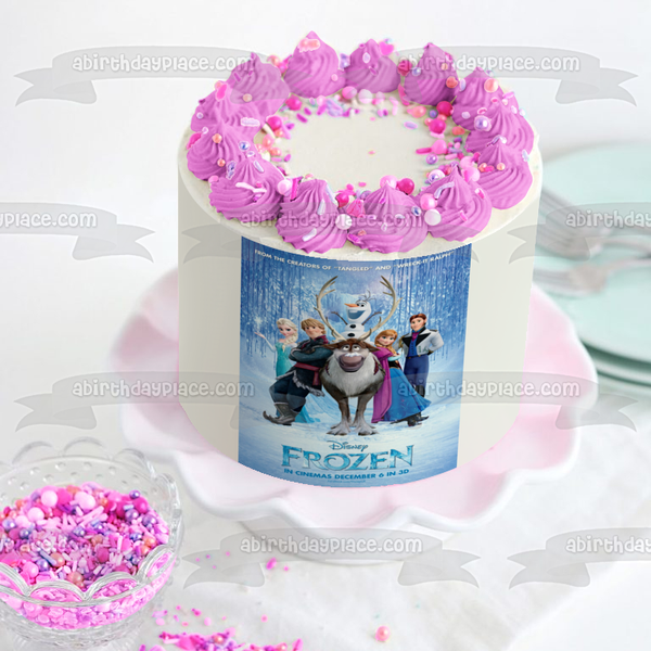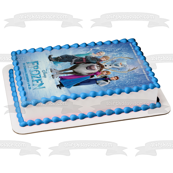 Celebrate your special day with this Frozen themed Edible Cake Topper Image featuring Anna, Elsa and Olaf!