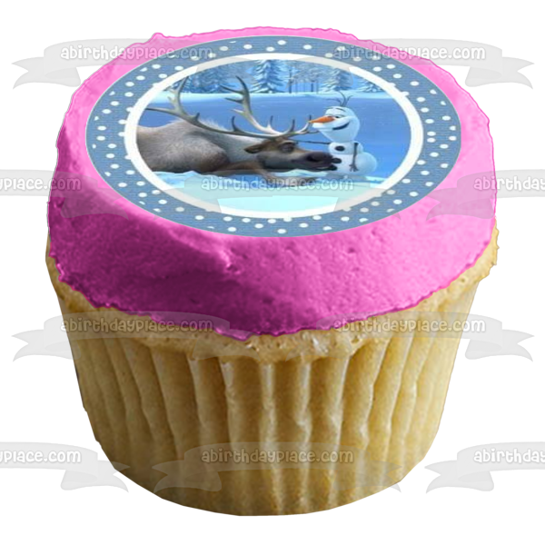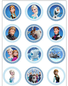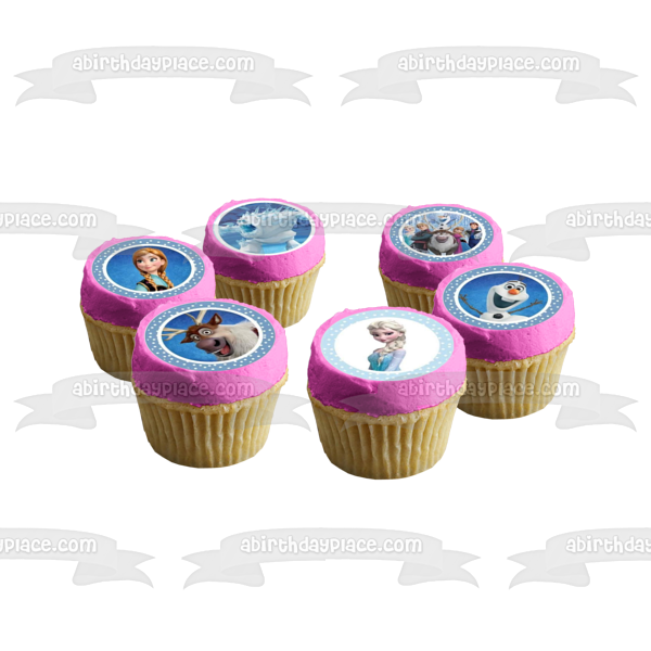 Celebrate your very special occasion with these 12 Count Frozen themed Edible Cupcake Topper Images featuring Anna, Elsa, Olaf and Sven!
