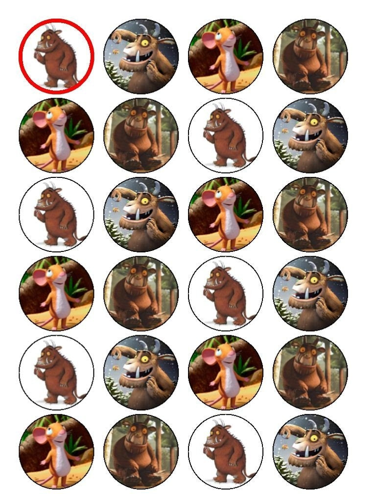 Celebrate your The Gruffalo fan with these 24 Count Edible Cupcake Topper Images featuring The Gruffalo, Mouse, Fox, Owl and a Snake!