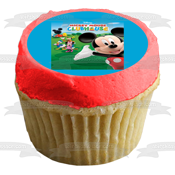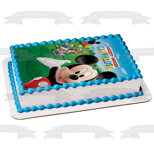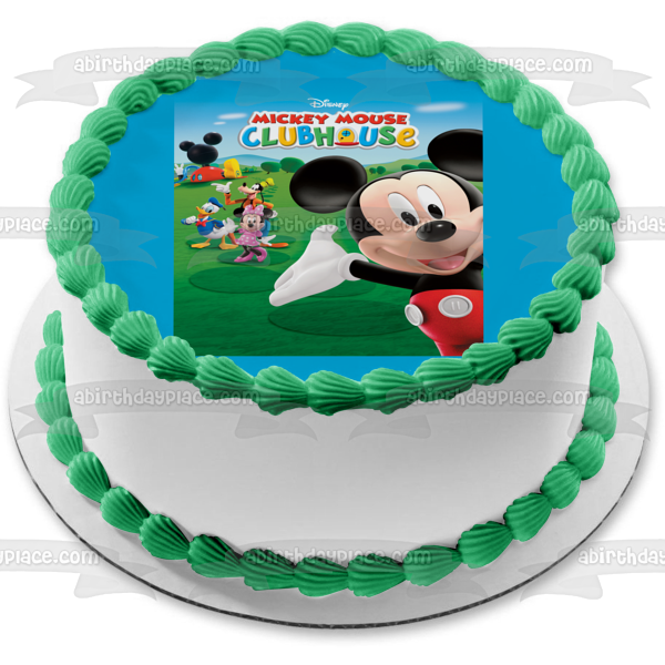 Celebrate your special day with this Edible Cake Topper Image featuring Poster Art from Mickey Mouse Clubhouse including Mickey Mouse, Minnie Mouse, Goofy and Donald Duck!