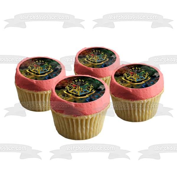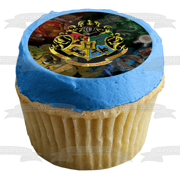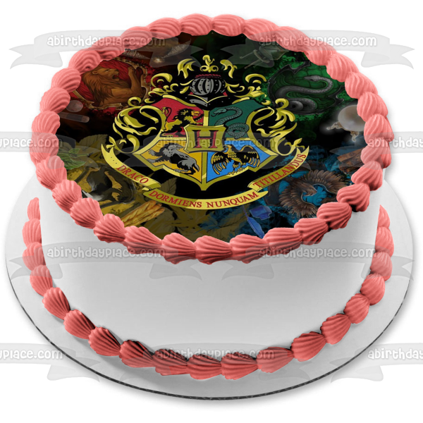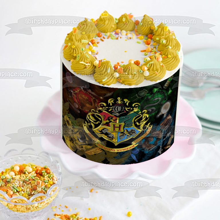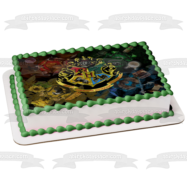 Celebrate your event with this Harry Potter themed Edible Cake Topper Image featuring the Hogwarts Crest on a House themed Background!