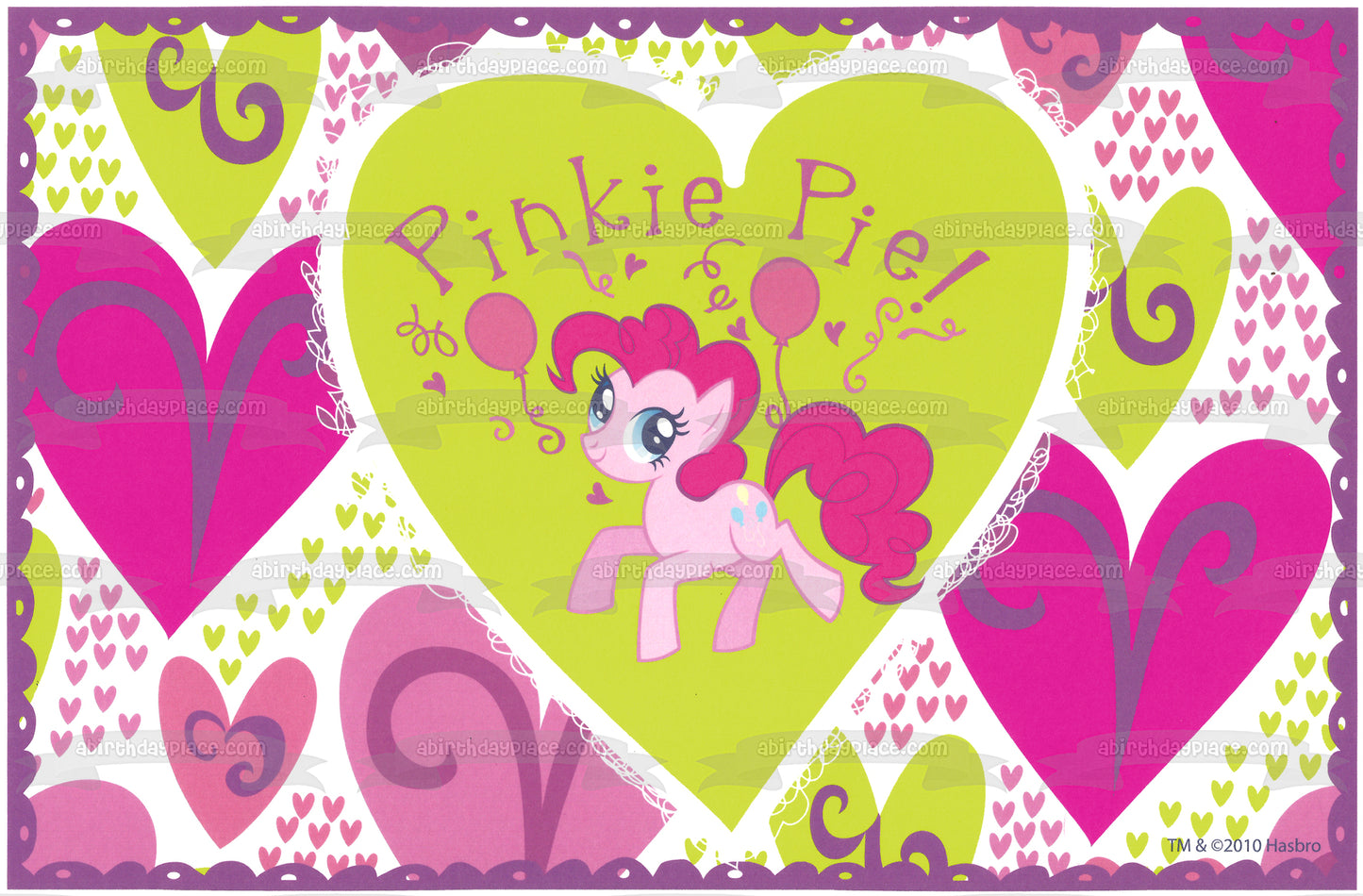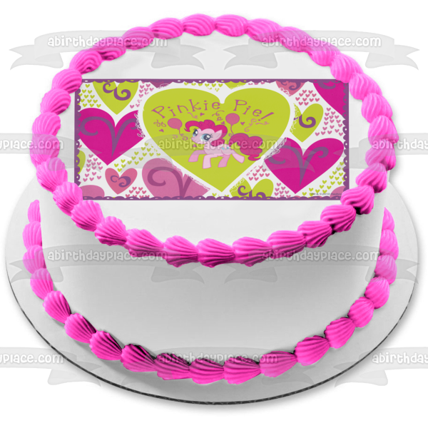 My Little Pony Pinkie Pie and Pink and Green Hearts Edible Cake Topper Image ABPID04376