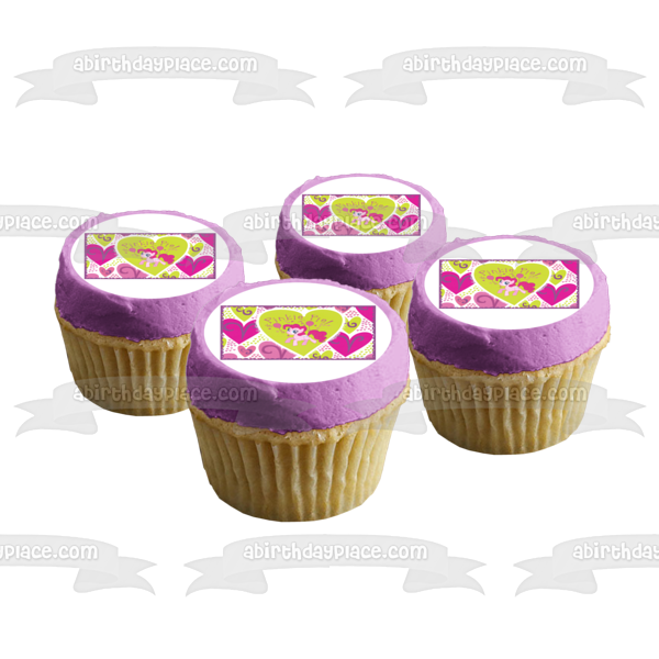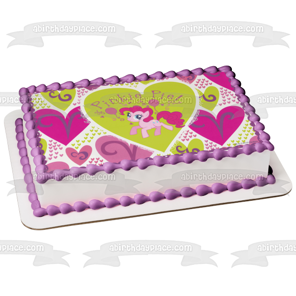 Decorate a Cake with this My Little Pony themed Edible Cake Topper Image featuring Pinkie Pie with Pink and Green Hearts!