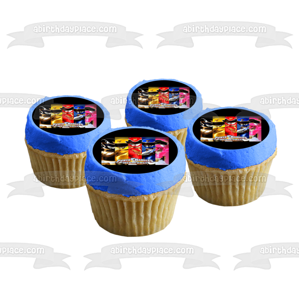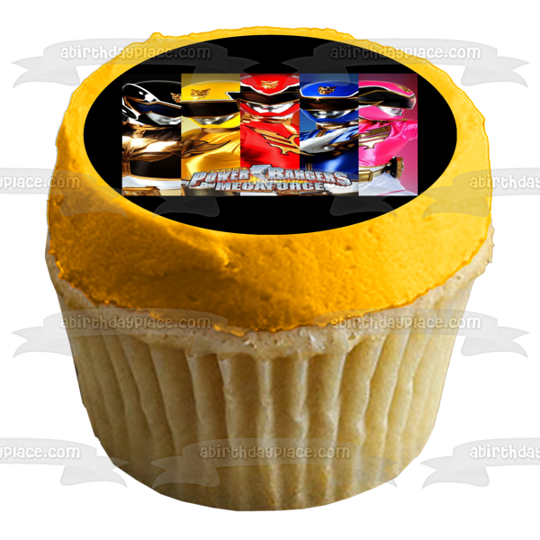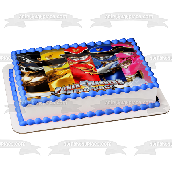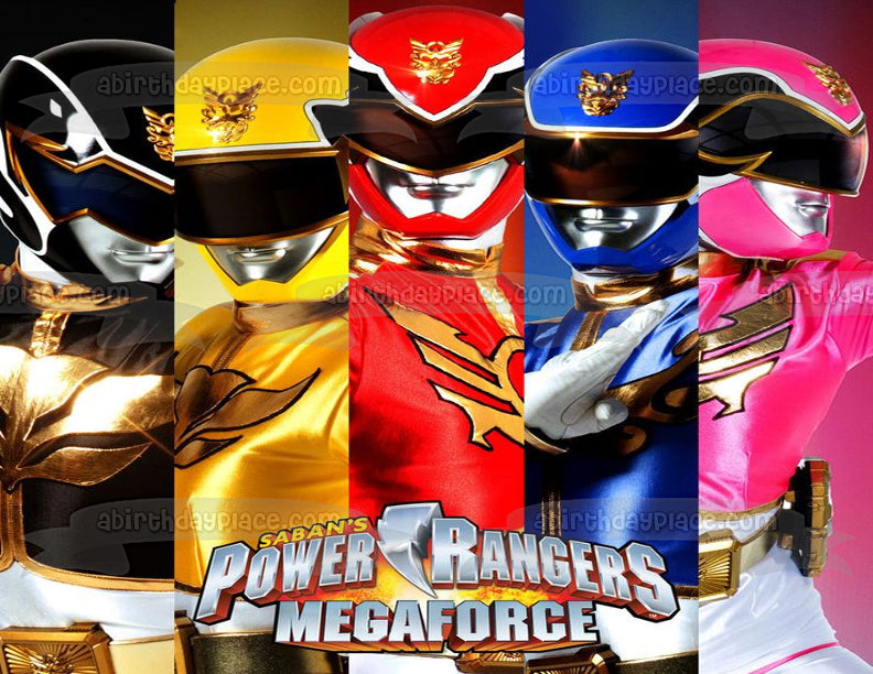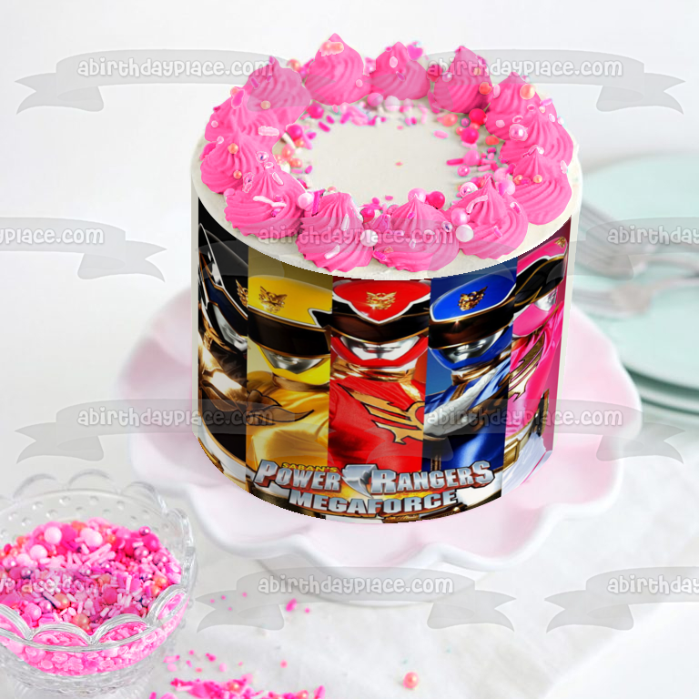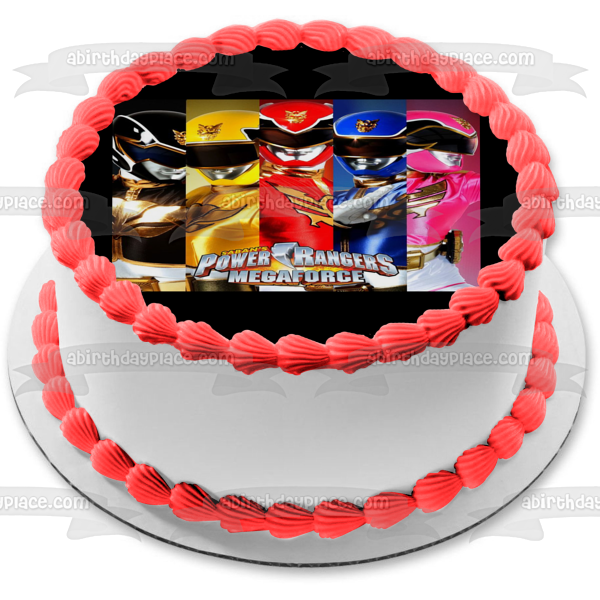 Decorate a Cake with this Power Rangers Megaforce themed Edible Cake Topper Image featuring Megaforce Black, Yellow, Red, Blue and Pink Rangers!