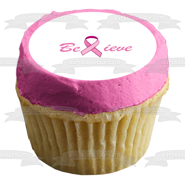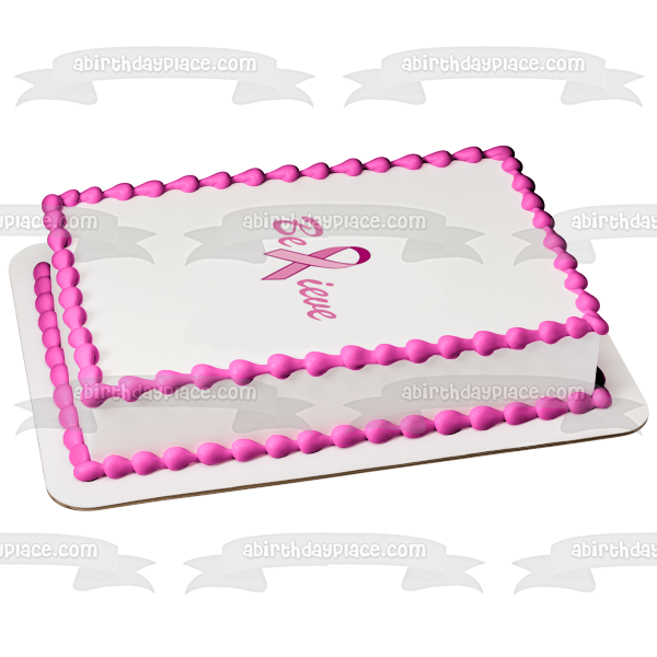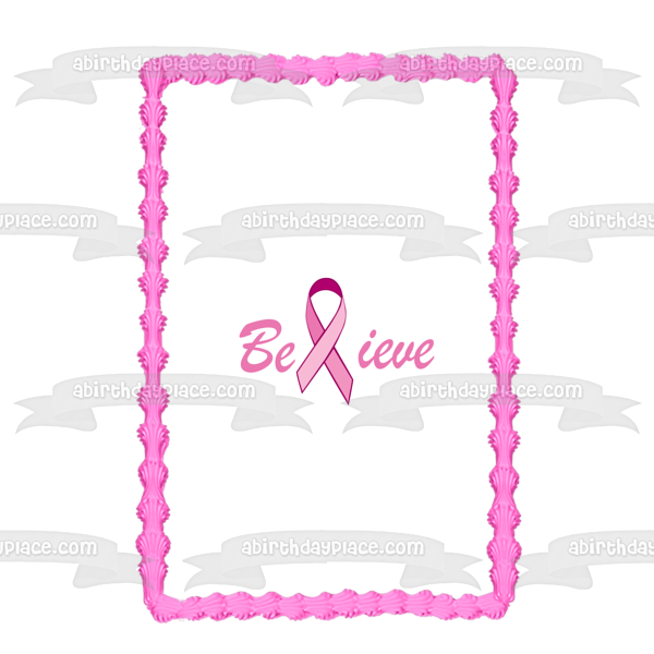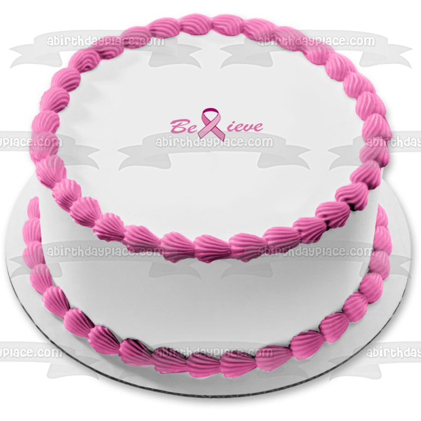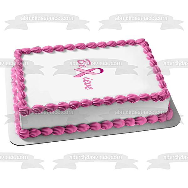 Decorate your Cake with this Believe themed Edible Cake Topper Image featuring a Breast Cancer Awareness Pink Ribbon!