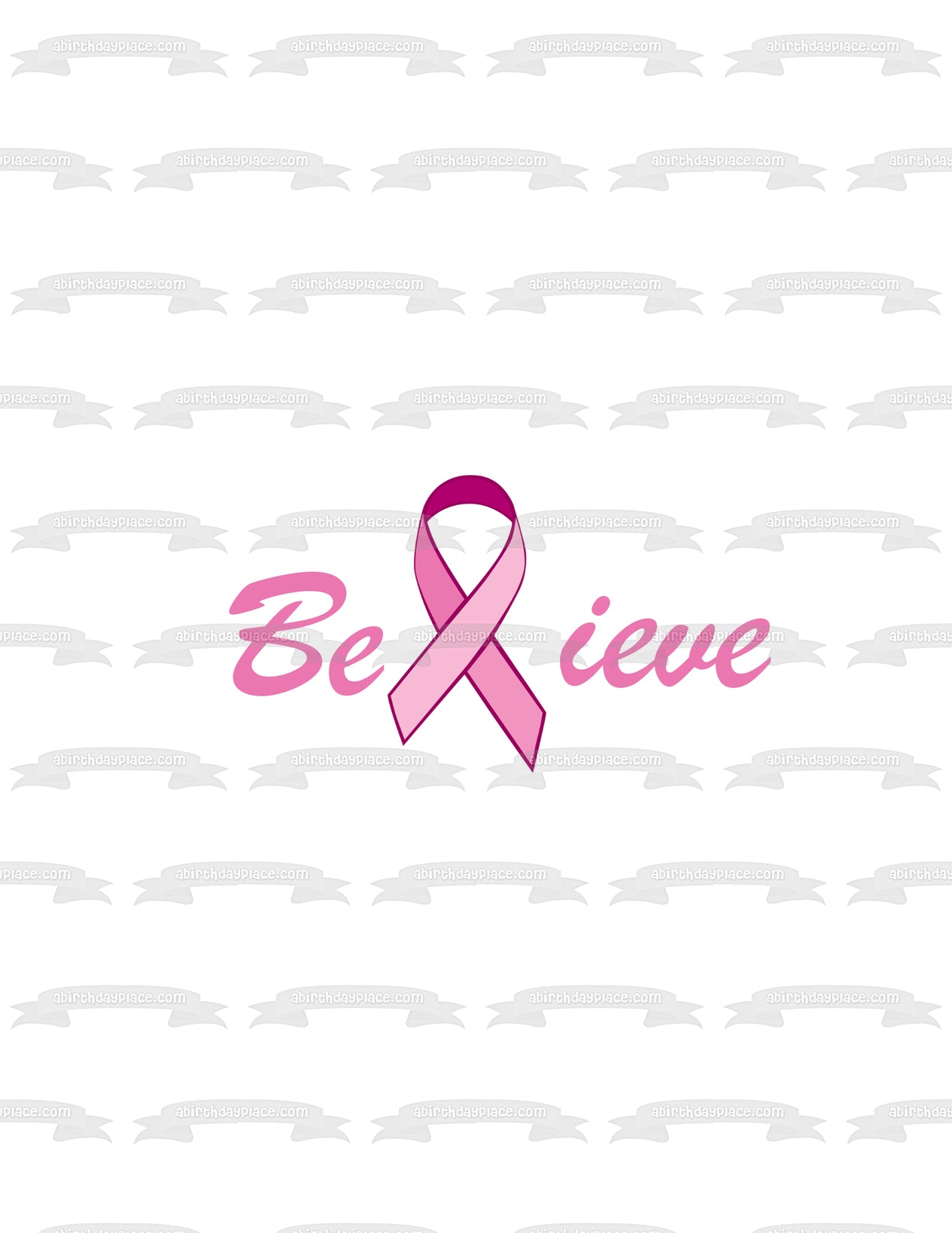 Believe Breast Cancer Awareness Ribbon Pink Edible Cake Topper Image ABPID04380