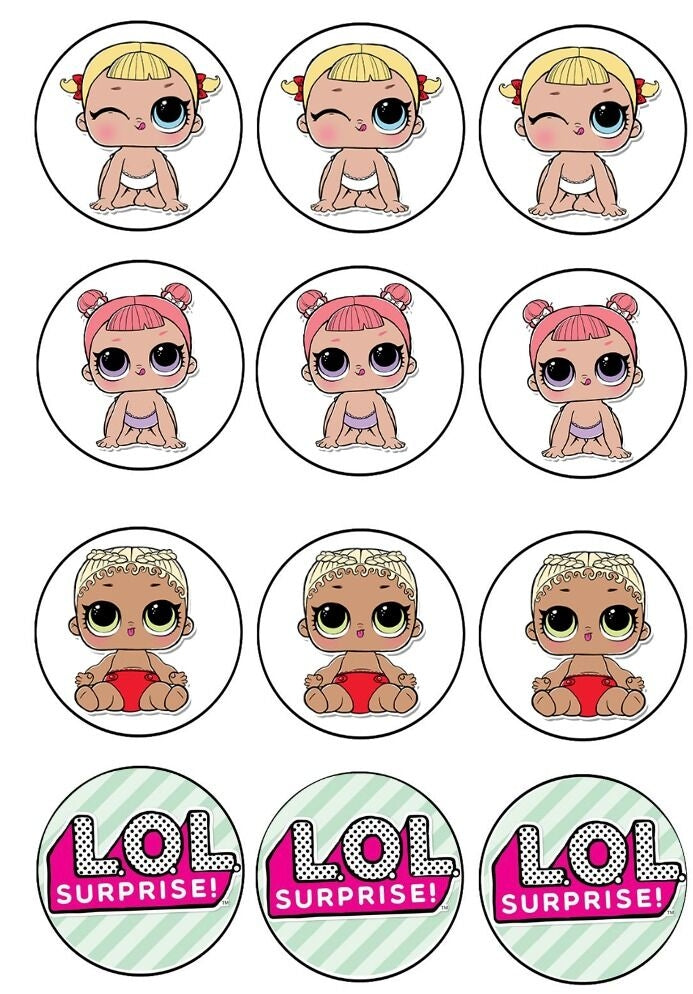 Celebrate your special event with these 12 Count LOL. Surprise themed Edible Cupcakes Topper Images featuring Lil Center Stage, Lil M.C. Swag, Lil Cheer Captain and the LOL. Surprise Logo!