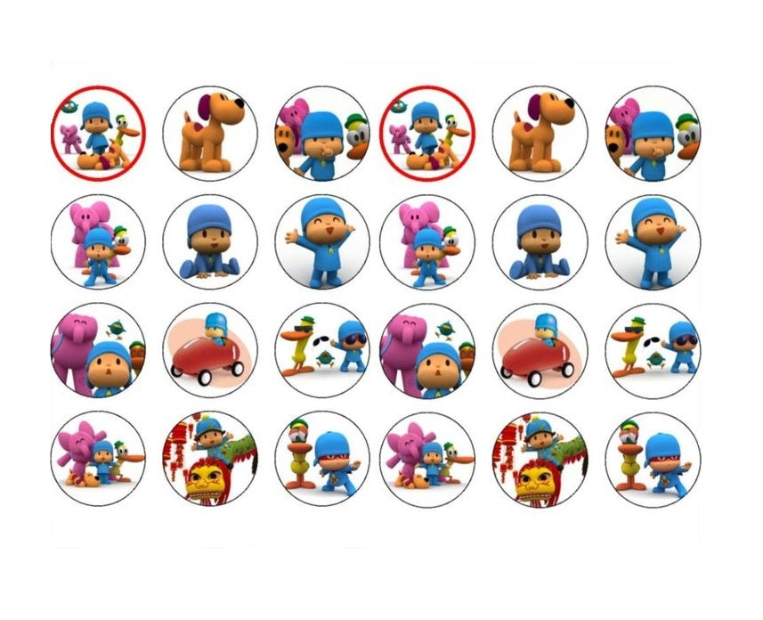 Decorate some cupcakes with these 24 Count Pocoyo themed Edible Cupcake Topper Images featuring Pocoyo, Pato, Elly, Loula and Sleepy Bird!