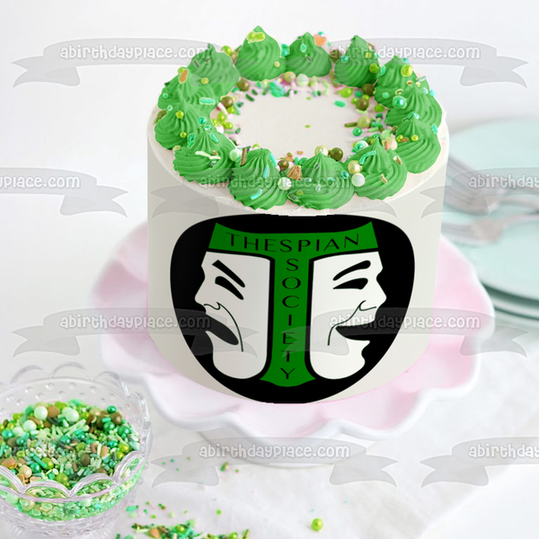 International Thespian Society Green Drama Edible Cake Topper Image ABPID04483