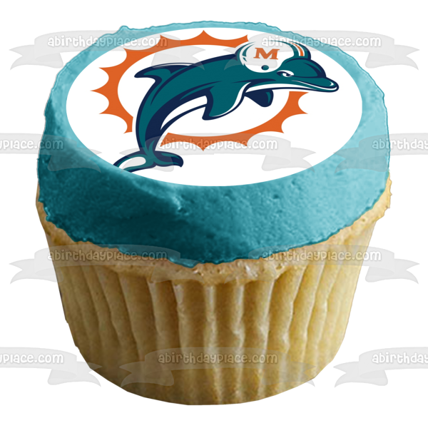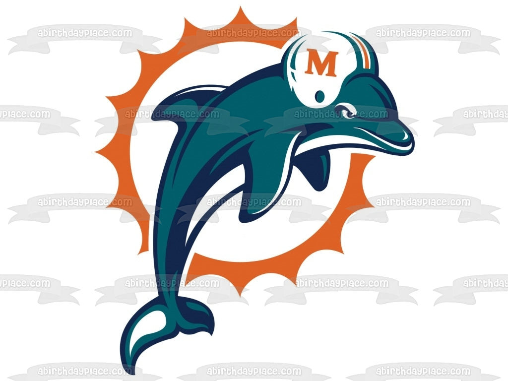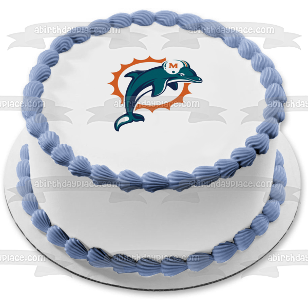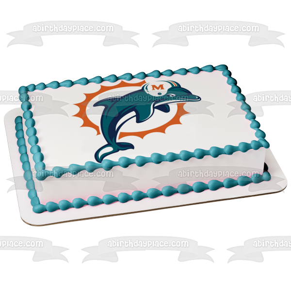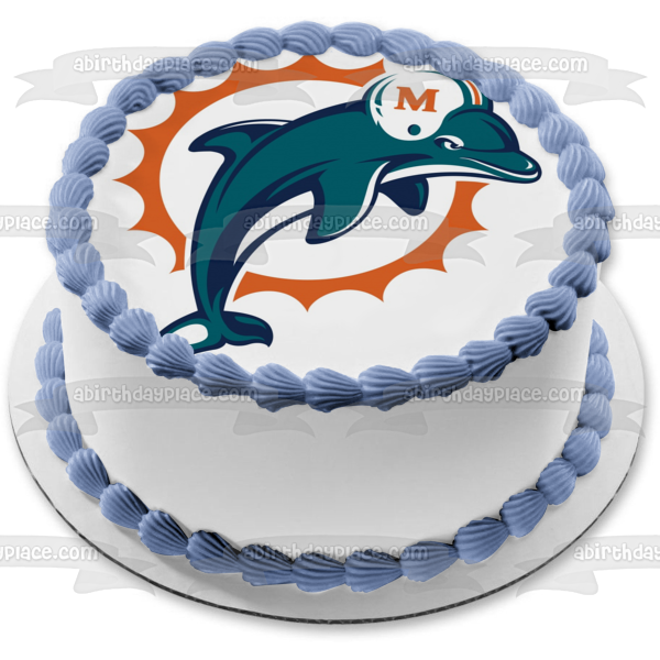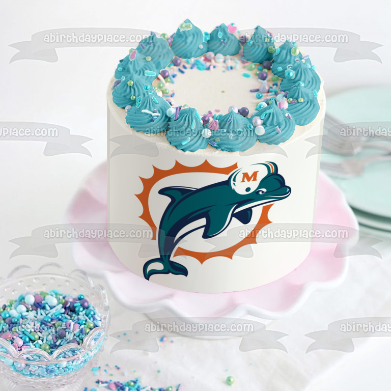 Celebrate your Sports fanatic with this Edible Cake Topper Image featuring the Logo of the Miami Dolphins, a professional American Football Team based in the Miami metropolitan area!