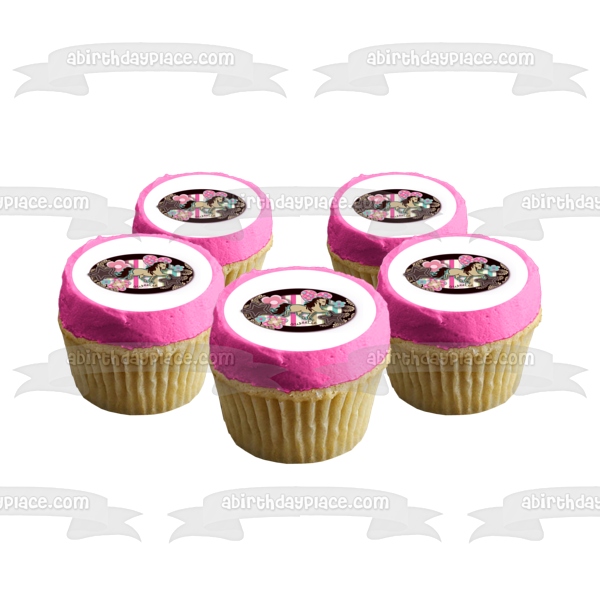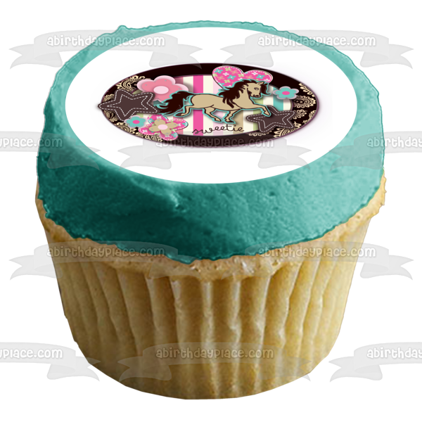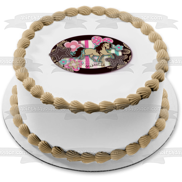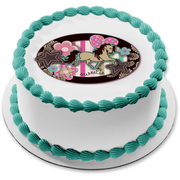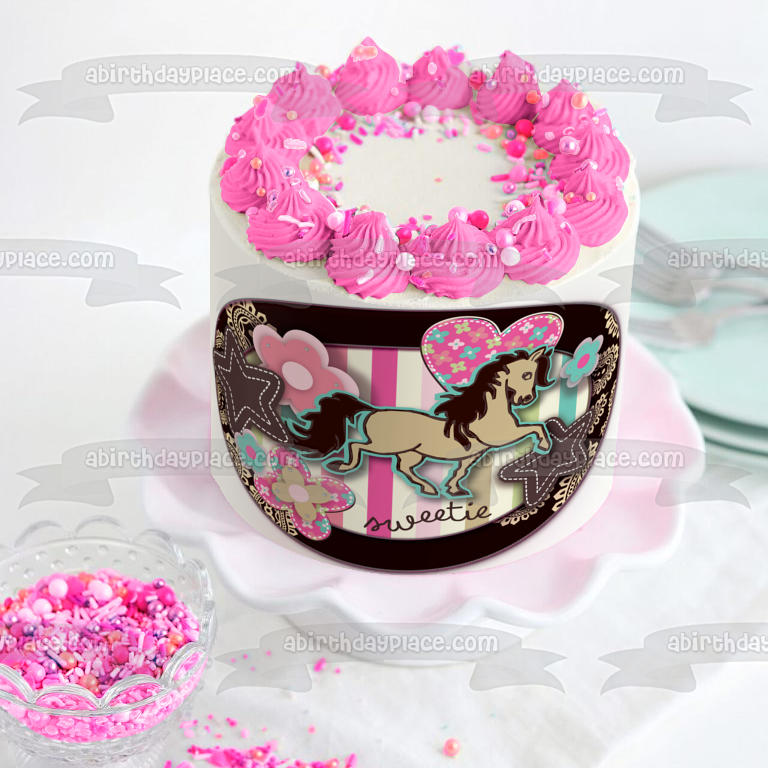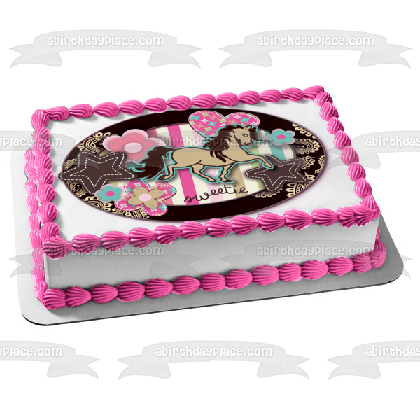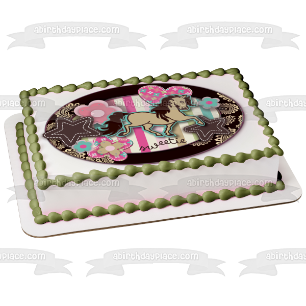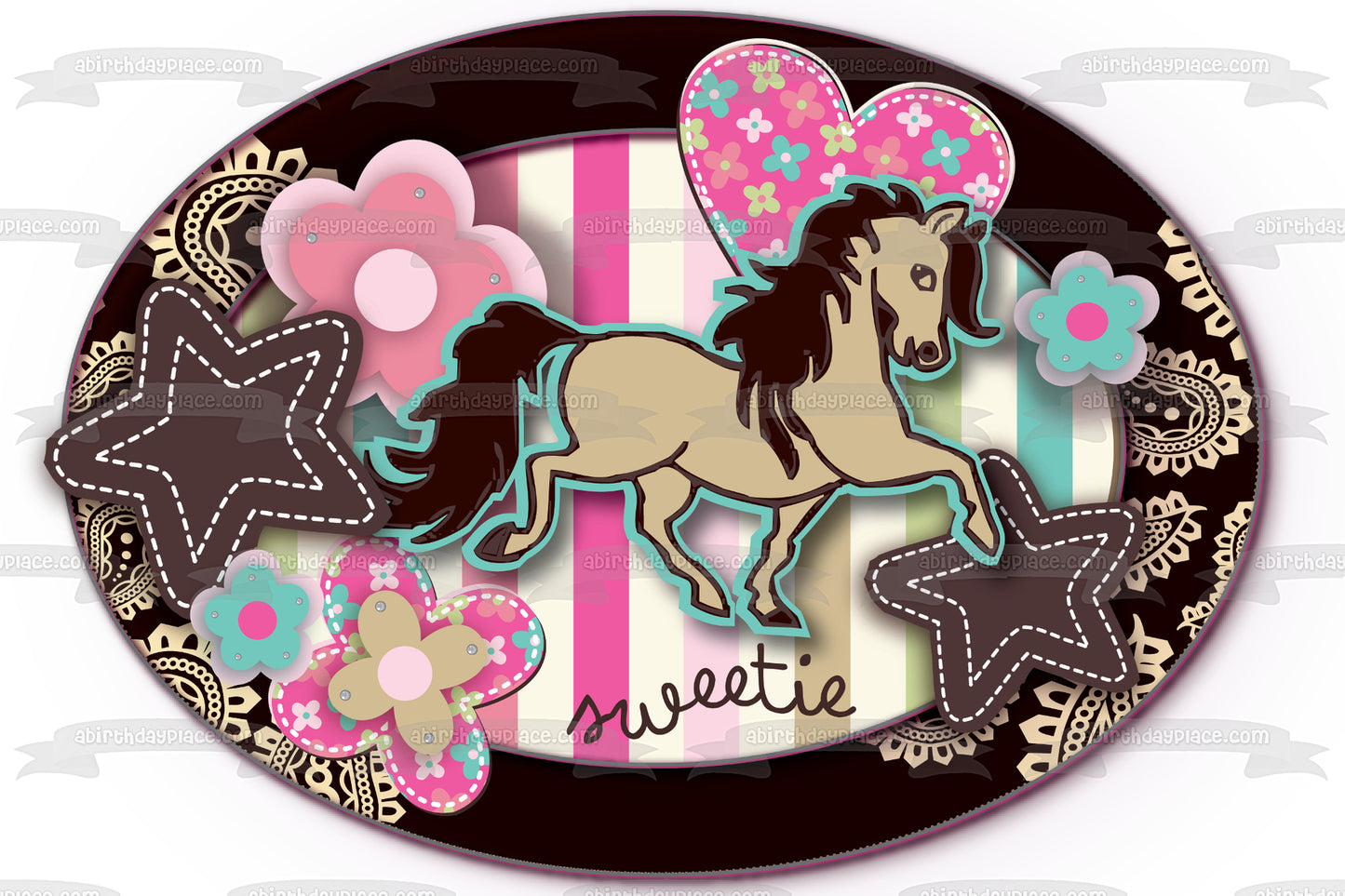 Sweetie Horse Hearts Stars Flowers and Paisleys Edible Cake Topper Image ABPID04629